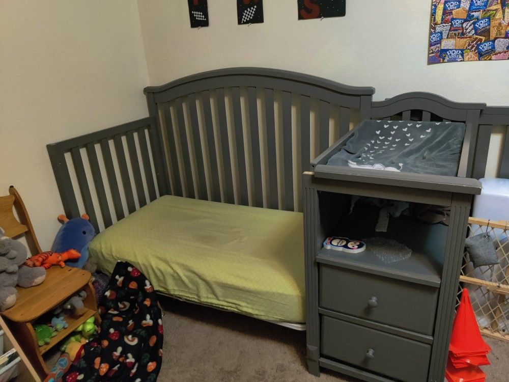 Crib with Attached Changing Table And Memory Foam Mattress
