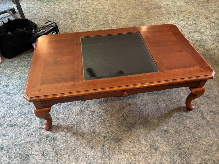 Table with glass insert measures 48” long, 27 1/2” wide, and 16” high. Pickup only in Palmetto Bay (south Dade)