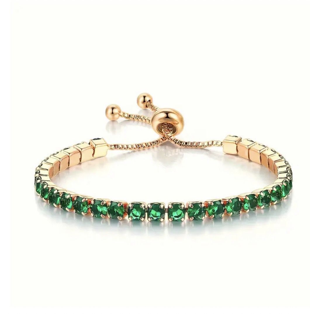 Beautiful woman’s beaded green gem, gold plated bracelet. Great quality meet great prices!