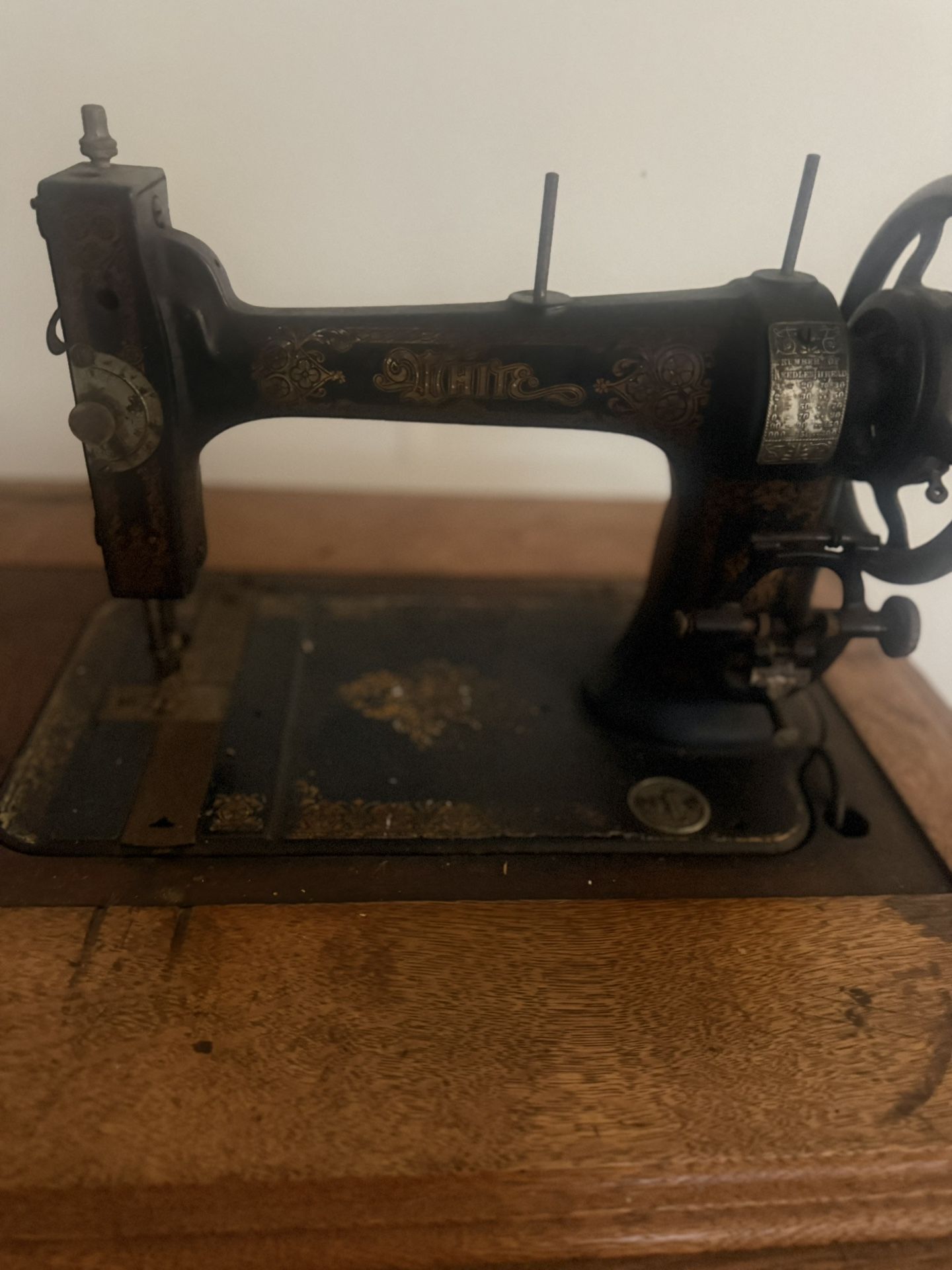 Vintage white sewing machine. I purchased this to restore it for my mother and never got around to it. Great machine , extremely heavy.