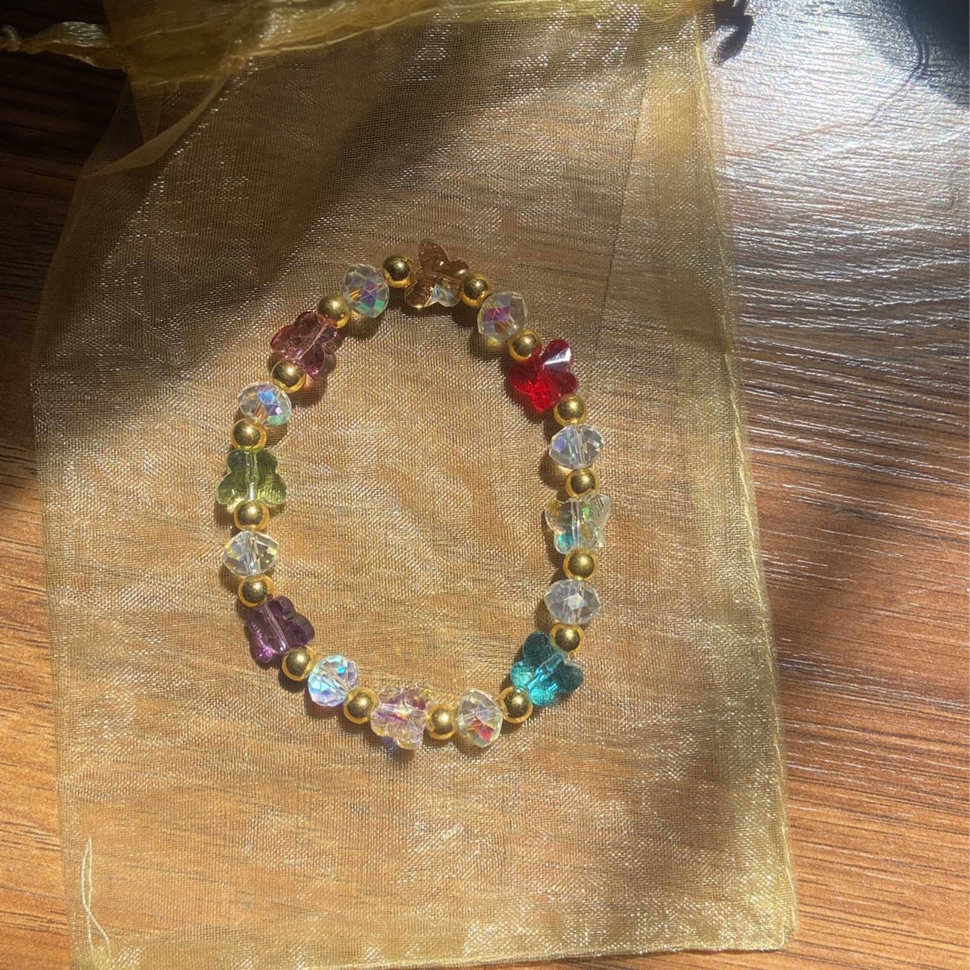 Brand new so cute young girls favorite bracelet Butterfly’s sparkle crystal resin hand strung