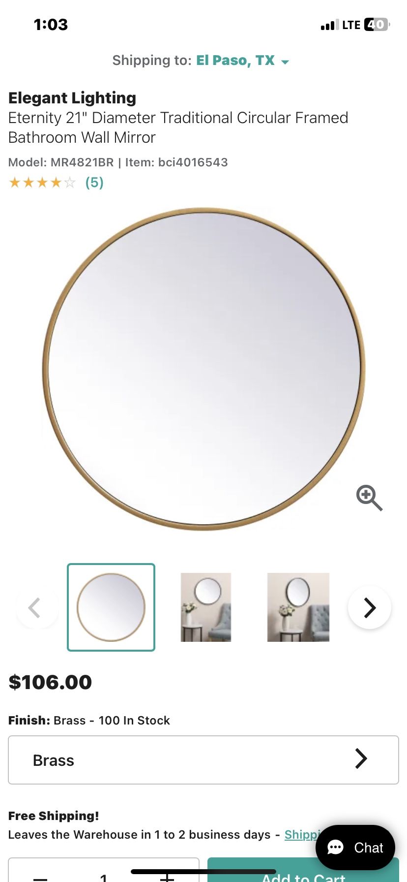 Elegant Lighting Eternity 21" Diameter Traditional Circular Framed Bathroom Wall Mirror Model: MR4821BR | Item: bci(contact info removed)