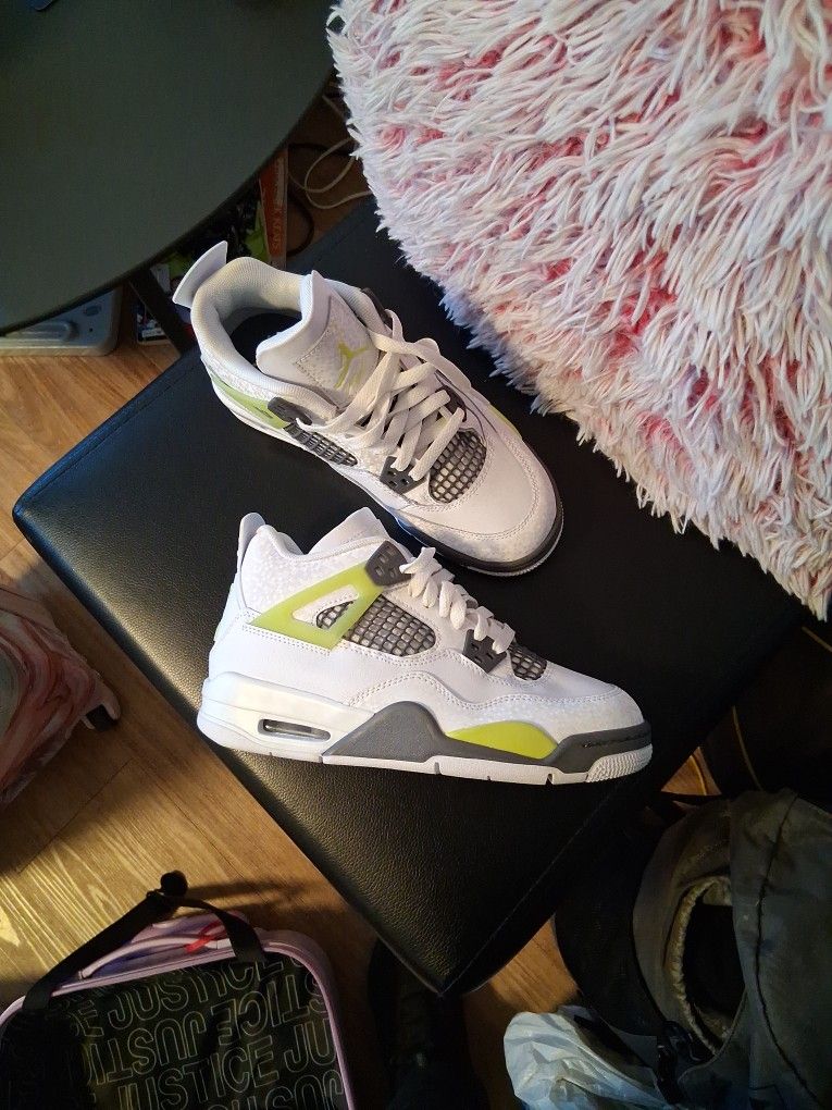 The newest addition to my personal collection Originally released in 2006, the Air Jordan 4 light lemon twist was released again in 2025. I have never even put them on they are brand new....... Price range from 99.99 to 210.99... So I am asking 75.00 They are a very beautiful shoe. Size 4.5 youth.