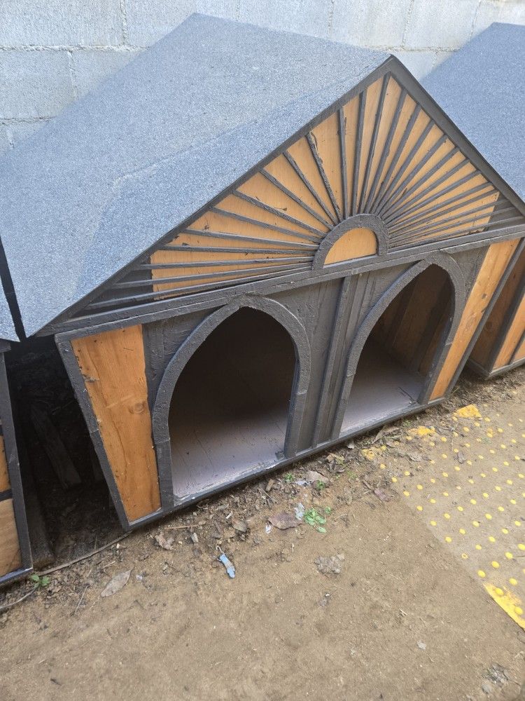 My dad builds dog houses Brand new large double door dog house ready to go $300 (firm on price) Dimensions are Width 5ft Length 3ft 3in Height 4ft 2in Roof comes off completely for easy cleaning (2 pieces) but sits as one. This is one house with two doors This house will fit 2 large size dogs (100 lbs or smaller) or 2 medium-sized dogs comfortably All wood walls/frame House is lifted off the ground Need a truck or van (check measurements) Zelle or Venmo *delivery available for a cost* We are located in Corona