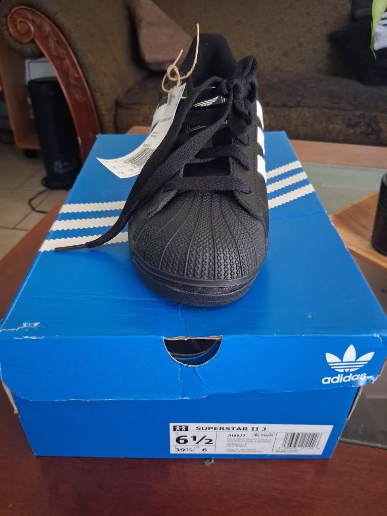 Selling a pair of new never used Adidas Superstar 2 Blk/Wht with original Box Size of shoes are show on pictures above But I'll noted here 6 1/2 Youth Asking Price $60 Serious buyers only PICK UP ONLY!