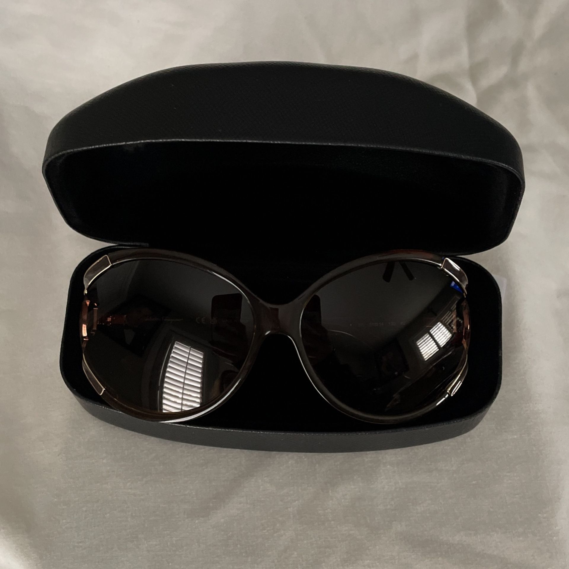 New Ferragamo oversize gold/with brown sunglasses with case .