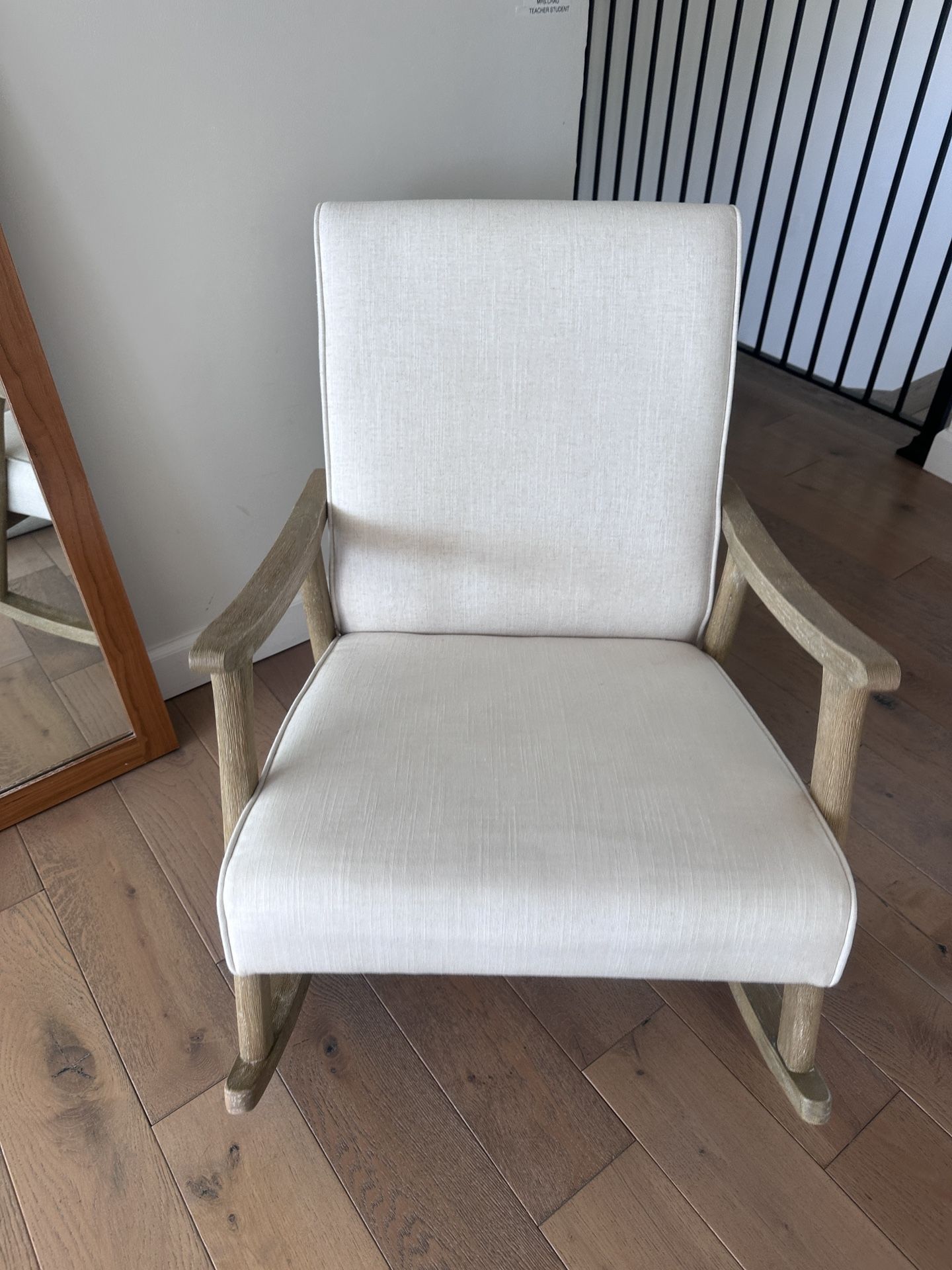 New Beautiful ivory linen rocking chair. Selling for $430 on world market.