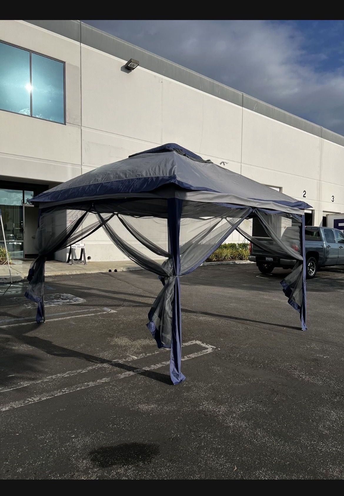 On SALE!! $85 11x11 ft Gazebo Tent with Mosquito Netting, Water Resistance. Blue And White Color