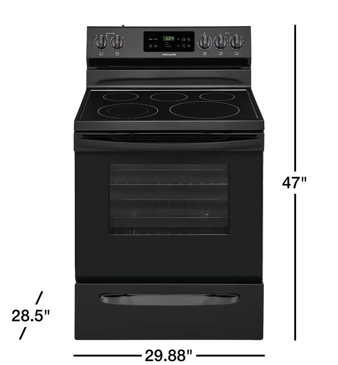 Frigidaire 30" Electric Range with 5 Heating Elements, 5.3 cu. ft. Capacity, One-Touch Self Clean, Quick Boil in Black (2 available) [BRAND NEW}
