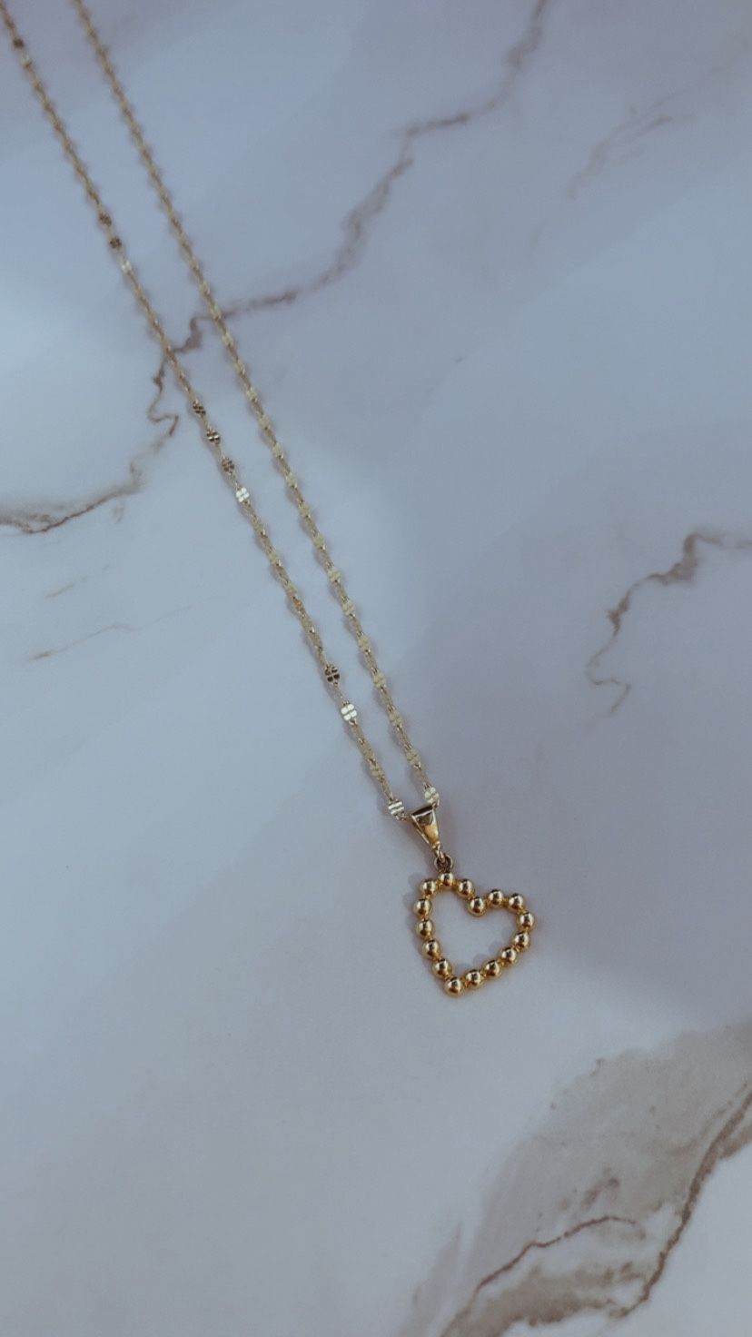 14k gold necklace with unique heart pendant. Come on today and take advantage of our layaway plans