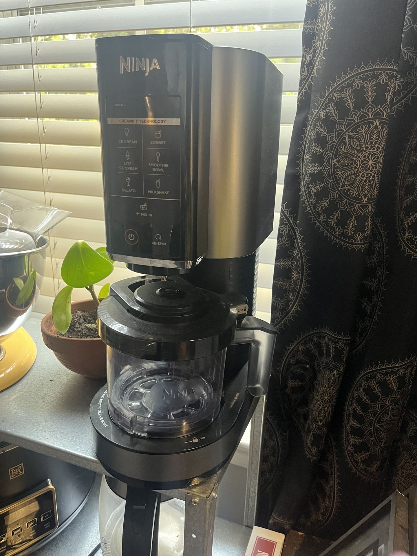 Ninja CREAMi barely used. It will come with two ice cream pint cups. Lots of great recipes online!
