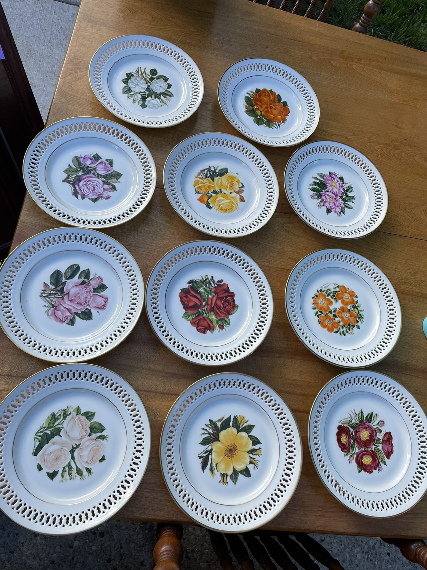 Offering you 11 collector plates from The 12 Rose Plates collection Manufactured by Bing & Grondahl for The Danbury Mint. Limited edition 1979. Made in Denmark. Porcelain with pierced rim. Measures about 8 1/2" in diameter. Stored behind glass for safe keeping. No apparent chips, cracks, crazing or repairs. No box or paperwork included. See my other rose plate collection listings: Mademoiselle Hardy, Tropicana, rose mundi, Austrian Copper, Peace, Rose Gallica, Mirandy, Angel Face, Mermaid, Queen Elizabeth, Miss Rose For decorative use only - Not for food use. * As with all well-loved vintage and antique pieces, although they are beautiful, please expect minor imperfections and character. I stand behind ALL of my treasures and your satisfaction determines my success. I do my best to describe items, but like our vintage treasures, we’re not perfect. Please purchase with confidence. Your questions are always welcome and answered promptly. I take great care and pride in researching, photographing, describing & expertly packing and shipping EVERYTHING I sell. Photographs will ALWAYS be the actual item being sold. I will post pictures to show any flaws, but if you would like more information, details or photos, please contact me. While I am not an expert on all that I sell, I take considerable time exploring the history of my items. I am a very compassionate and genuine person and work extremely hard to find just the right treasures to offer. Your feedback rating is important to me. If you receive your item and it turns out to be less than what you were expecting, please contact me within 3 days of receiving your item. I will do my best to make it right for you, as I am continually striving for a 5-star rating.