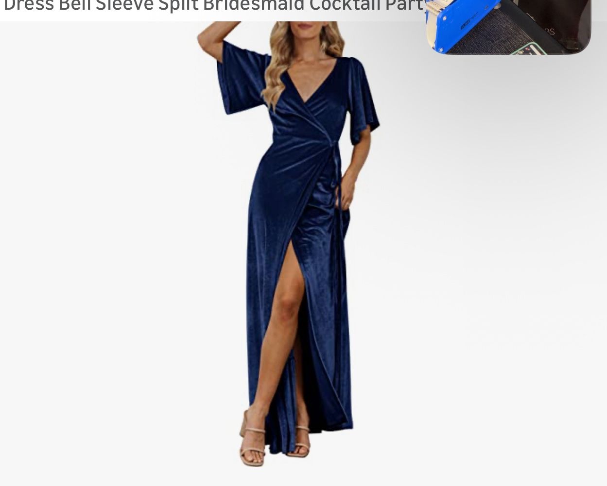 Woman’s V-neck Wrap Velvet Maxi Wedding Guest Dress Bell Split Sleeve Split Bridesmaid Cocktail Party Formal Dress