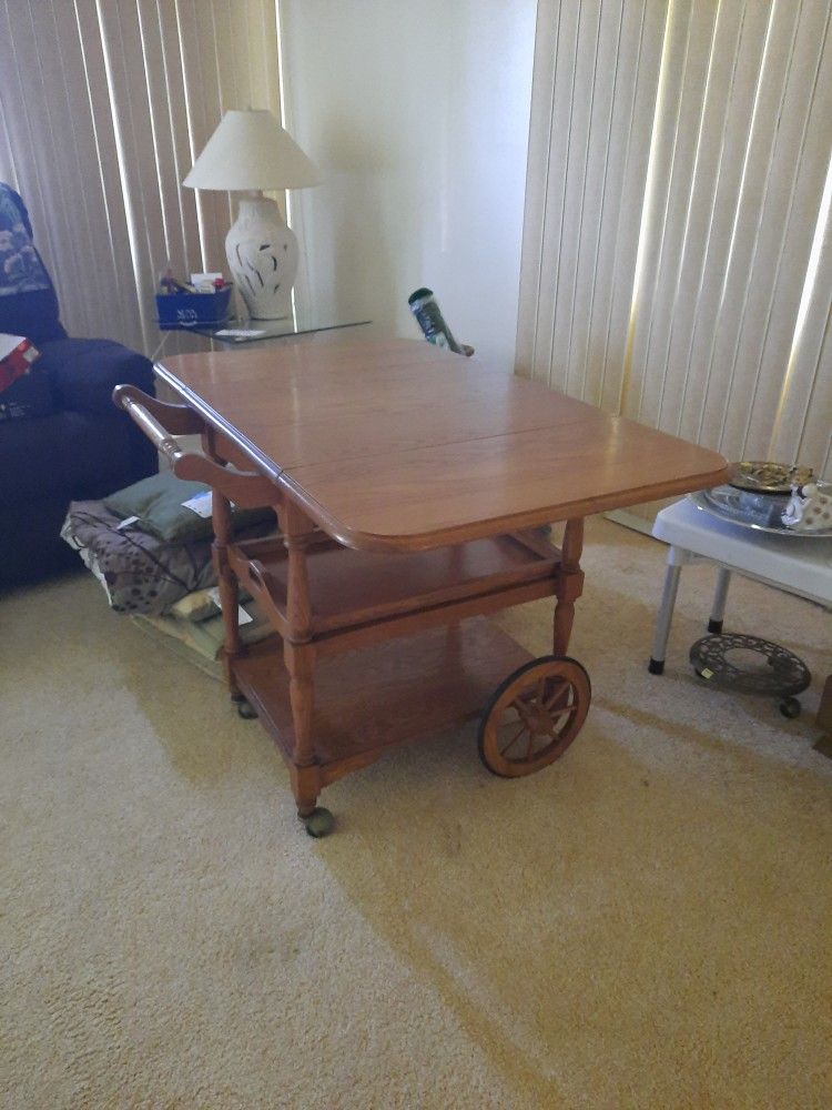 Excellent condition. Has pull out drawer in addition to slide out tray. Sides fold down for easy storage.