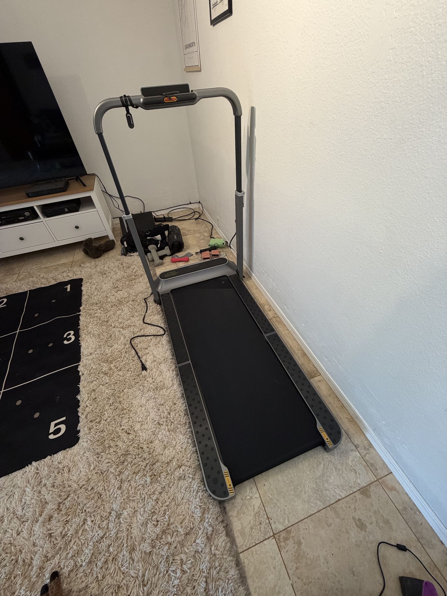 I bought this walking pad/treadmill late last year, but ended up joining a gym instead. It’s only been used a few times. It folds in half and the handles drop down so you can easily store it when not in use. Cash only https://offerup.com/redirect/?o=aHR0cHM6Ly93d3cud2Fsa2luZ3BhZC5jb20vcHJvZHVjdHMvd2Fsa2luZ3BhZC1yMi1mb2xkYWJsZS10cmVhZG1pbGw/Z2FkX3NvdXJjZT0xJmdhZF9jYW1wYWlnbmlkPTIzNDcwMDE4NzQwJmdicmFpZD0wQUFBQUFvWmp5ekJQZ01SR0sxRHlIZTJTNmlfZndaMGtXJmdjbGlkPUVBSWFJUW9iQ2hNSTg1RG5qNlNGa3dNVk1TS3RCaDIzTUJmcEVBQVlBU0FBRWdKR01mRF9Cd0U=