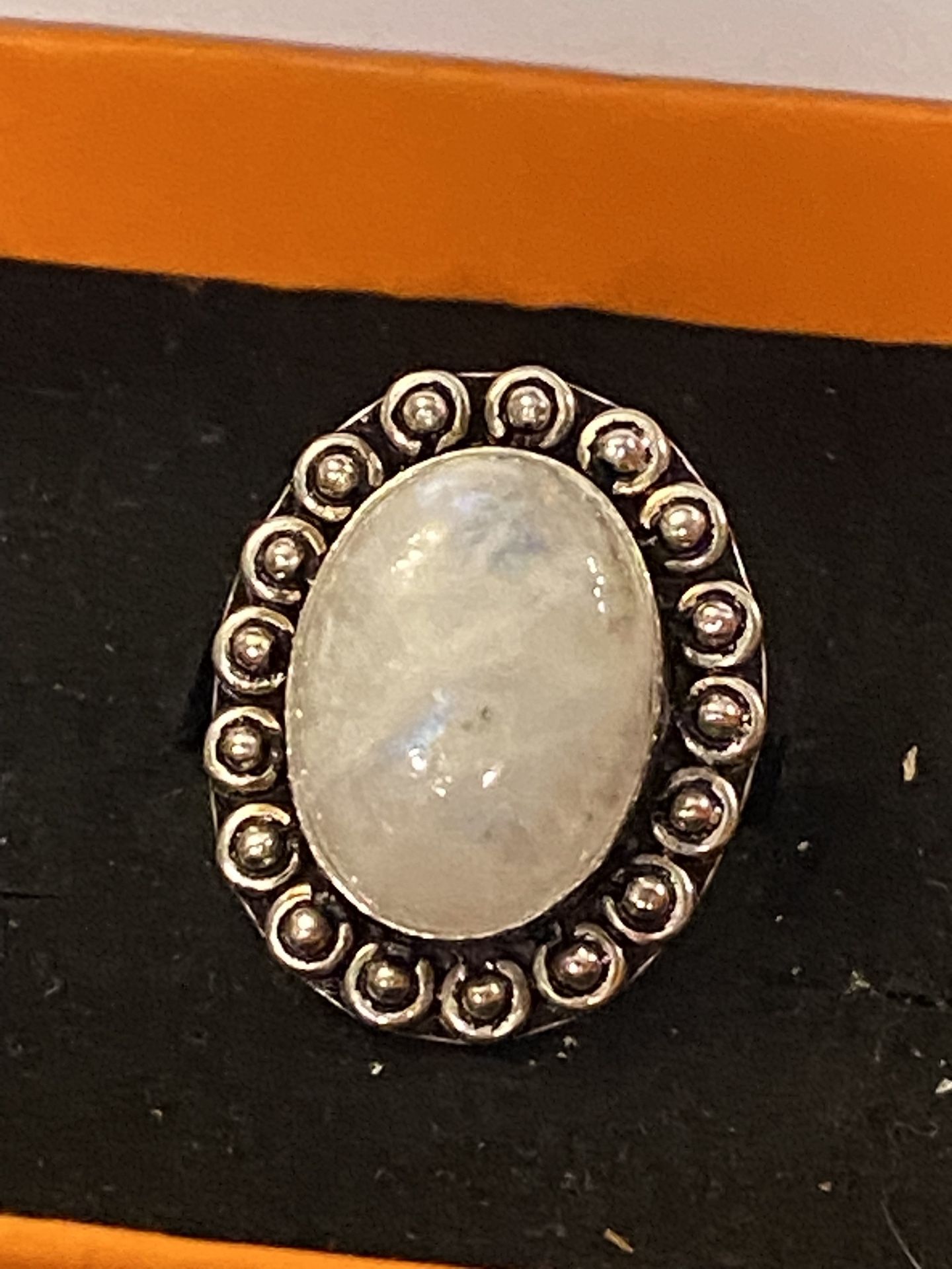 Tested Gem - Moonstone Silver plated Size 8 Great flash in stone