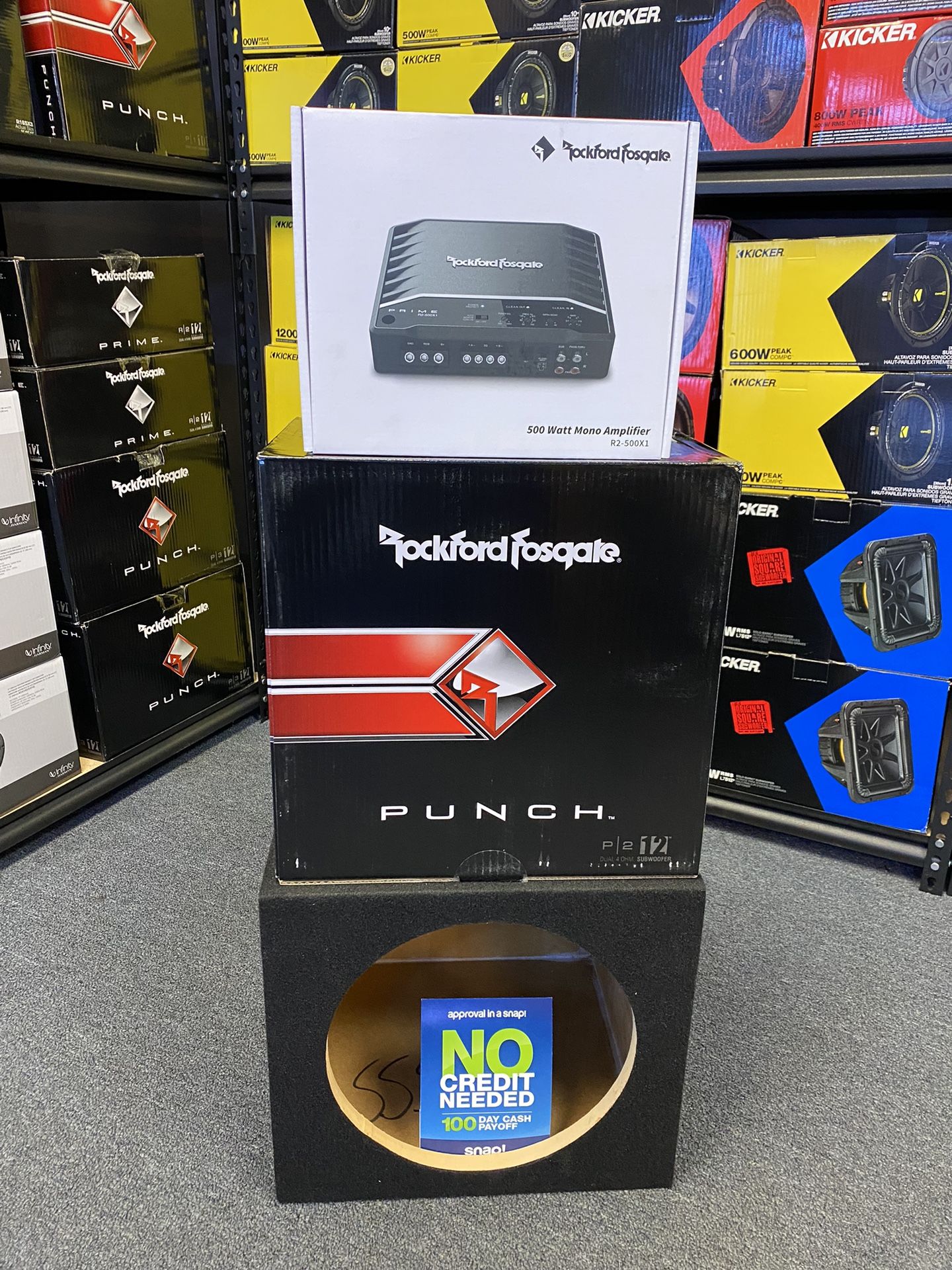 New (1) 12β inch Rockford Fosgate Punch (P2) 800 Watts Max (400 watts RMS) Dual Voice Coil Car Audio Bass Subwoofer. New Rockford Fosgate Prime R2 500 Watts RMS Monoblock Car Audio BASS amplifier w/ bass control knob. Perfect True RMS amplifier to match up with these powerful hard hitting subwoofers ! Brand new in manufacturer box and never used. All sales are final. No exchanges or returns. New 12β inch single Subwoofer Box π NOTE: Ported boxes are available for an additional cost Installation is NOT included in the price ! Professional Installation is Available Financing Available π€ * No Credit Needed * Easy Qualify * 100 Days No Interest Please check out my Offer Up page to see more items for sale and donβt forget to follow us ! Note: ALL low ball offers will be IGNORED and Blocked. Serious buyers only, please !!