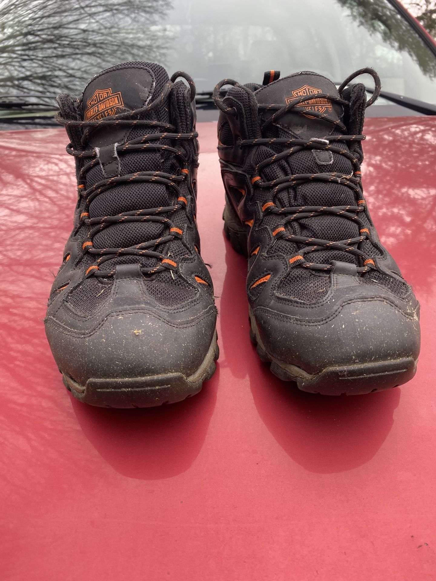 Really beat up Harley Davidson boots. Given to me by a friend who wore them daily and abused the hell out of them !they’re worn and dirty and could use a good cleaning, but still have some life left in them. Shoot me an offer.