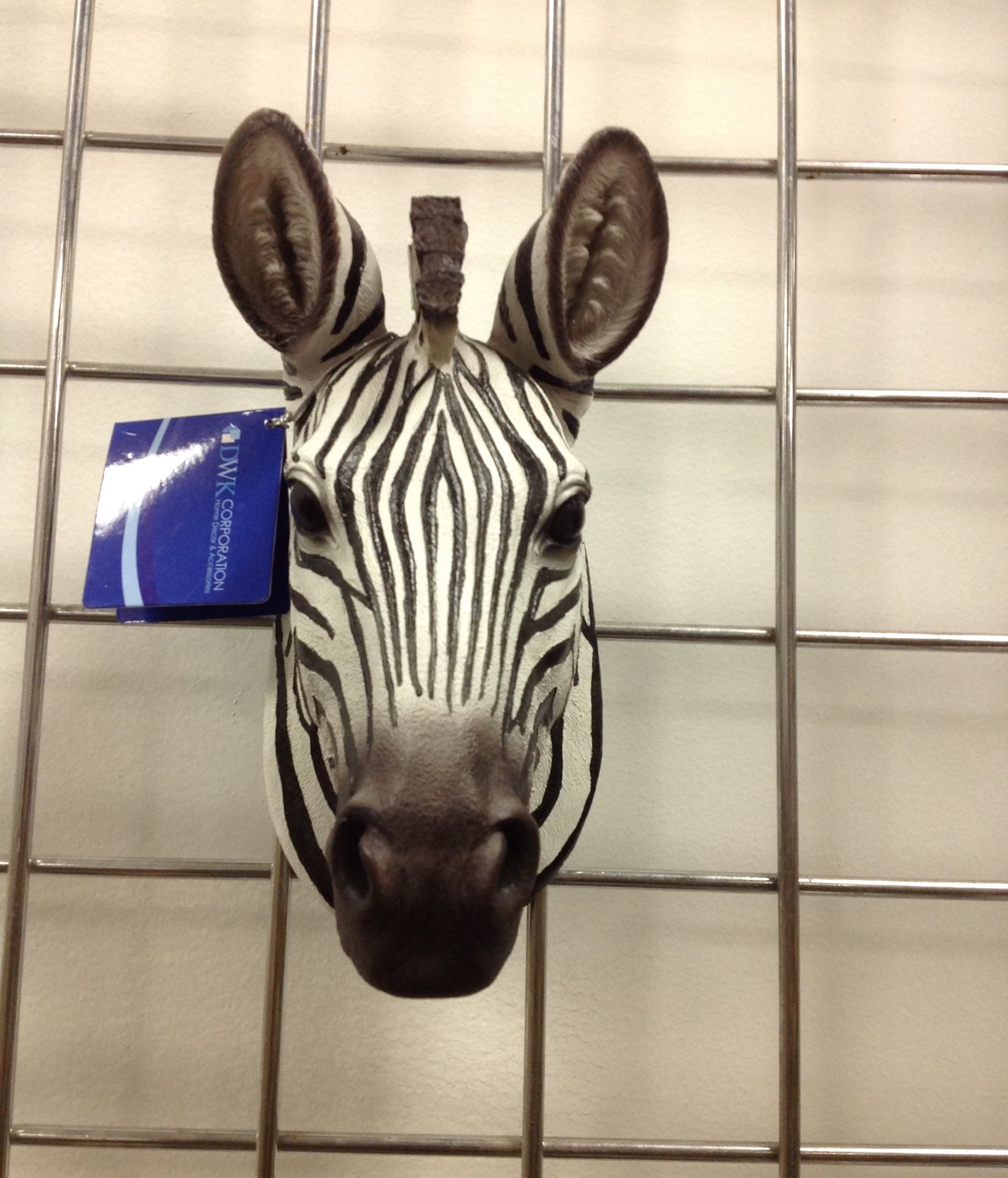 Very detailed thin zebra face that hangs on the wall. This zebra is white with black stripes, a black nose and a cute mohawk. Dimensions: h:10 x w:4 x d:5 inches Item Number: HD-26907-4 Shipping is estimated only.