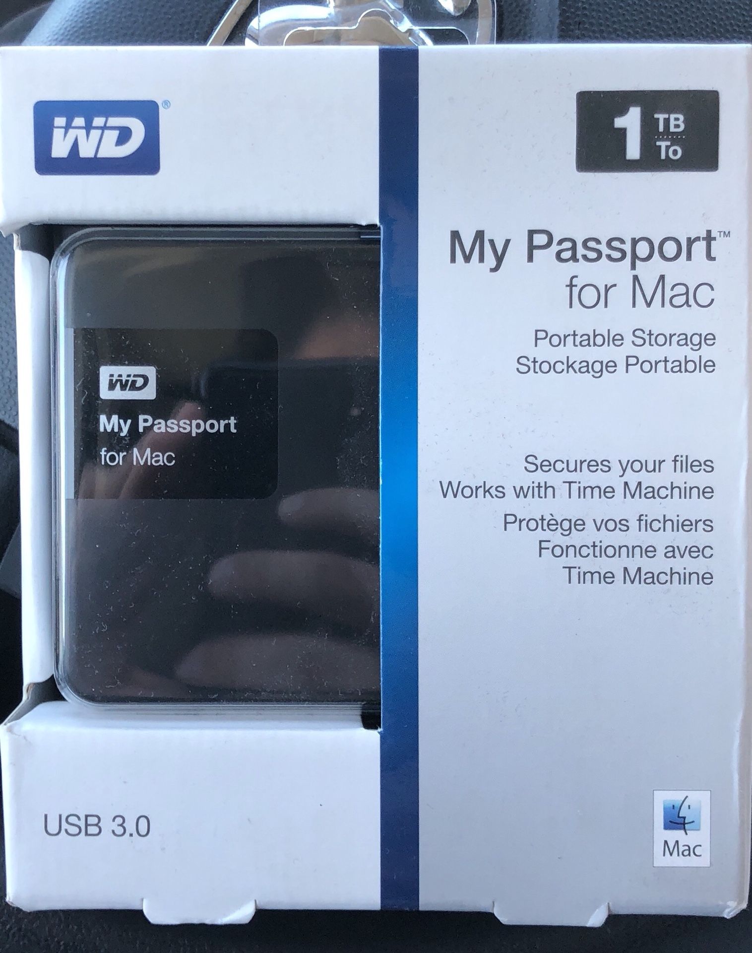 My passport for Mac. Portable Storage. USB 3.0 has 1 TB or 1,000 GB of space