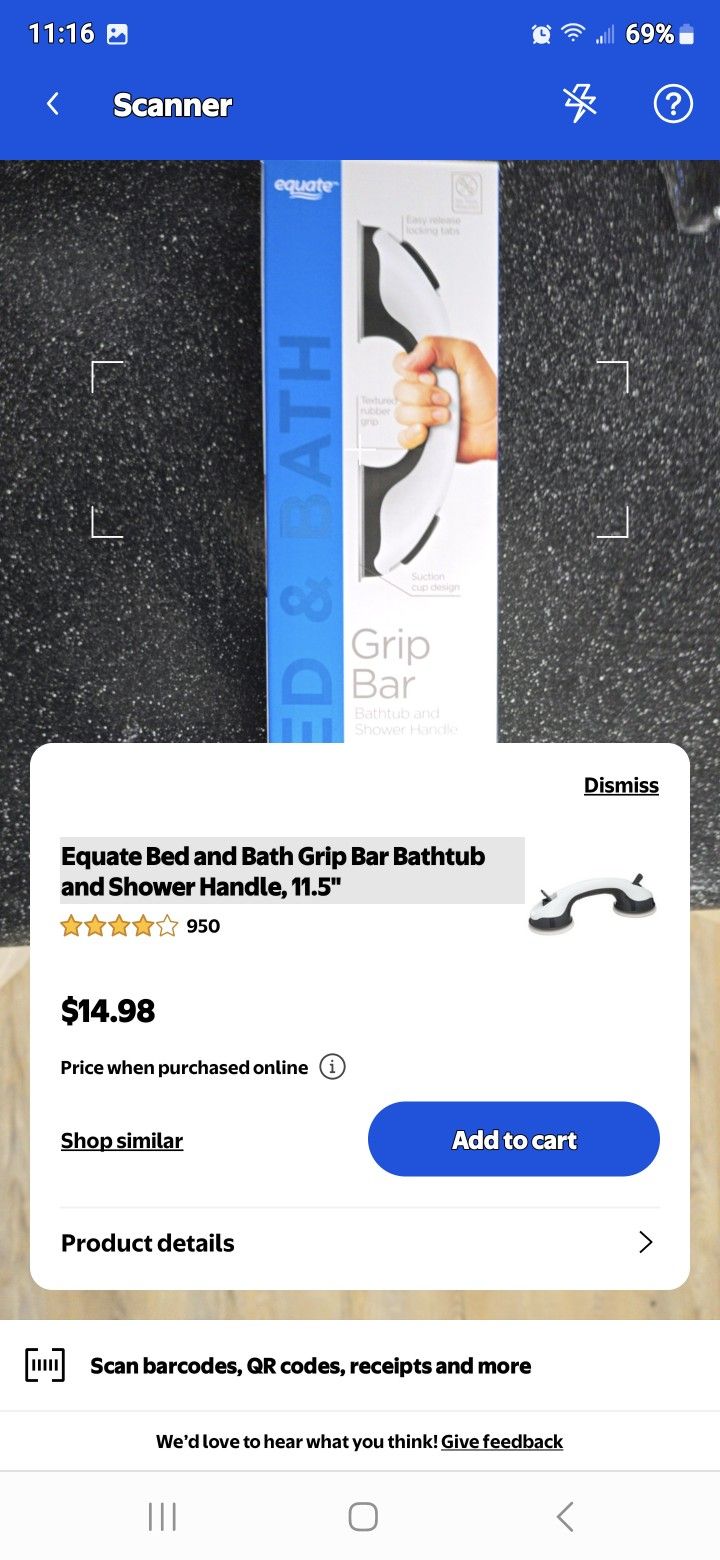 Grip bar bed & bathtub shower handle