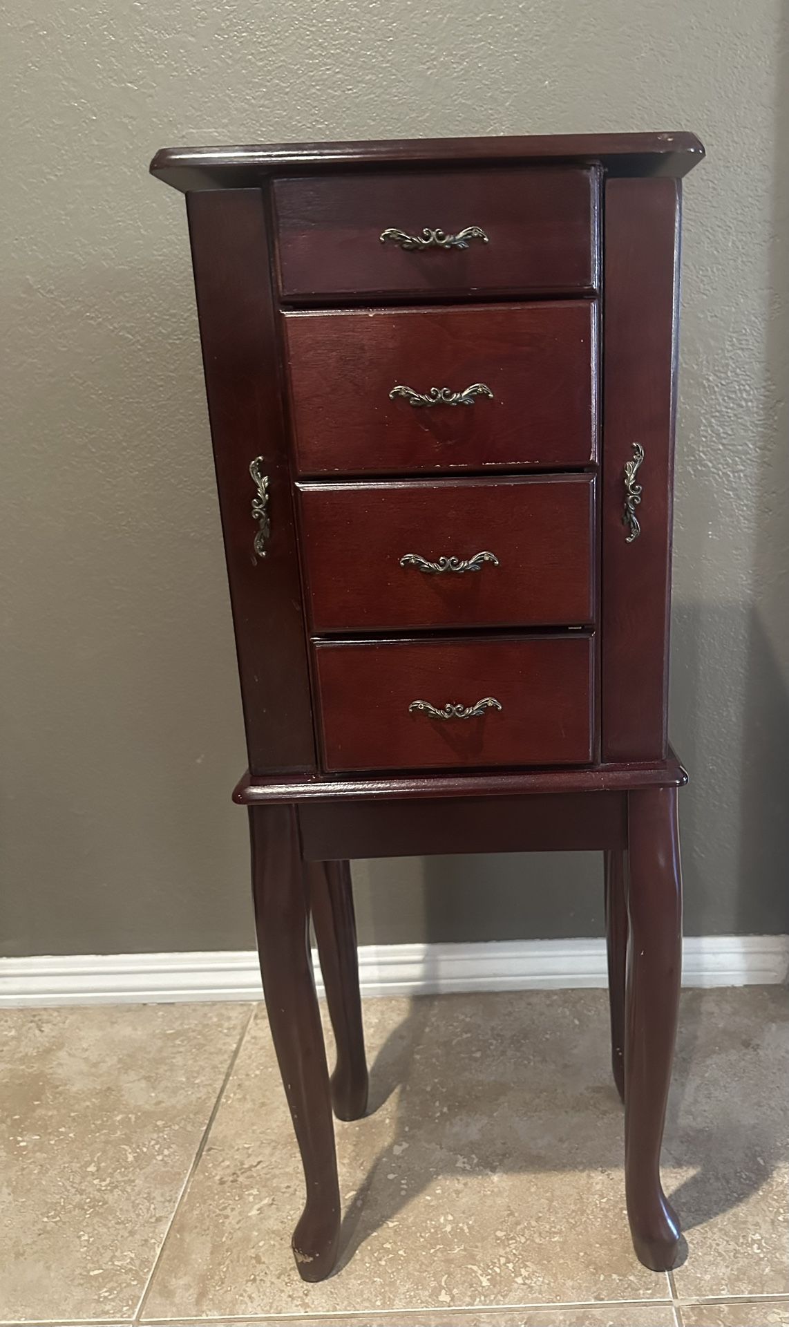 Jewelry cabinet with minor scratches dark cherry