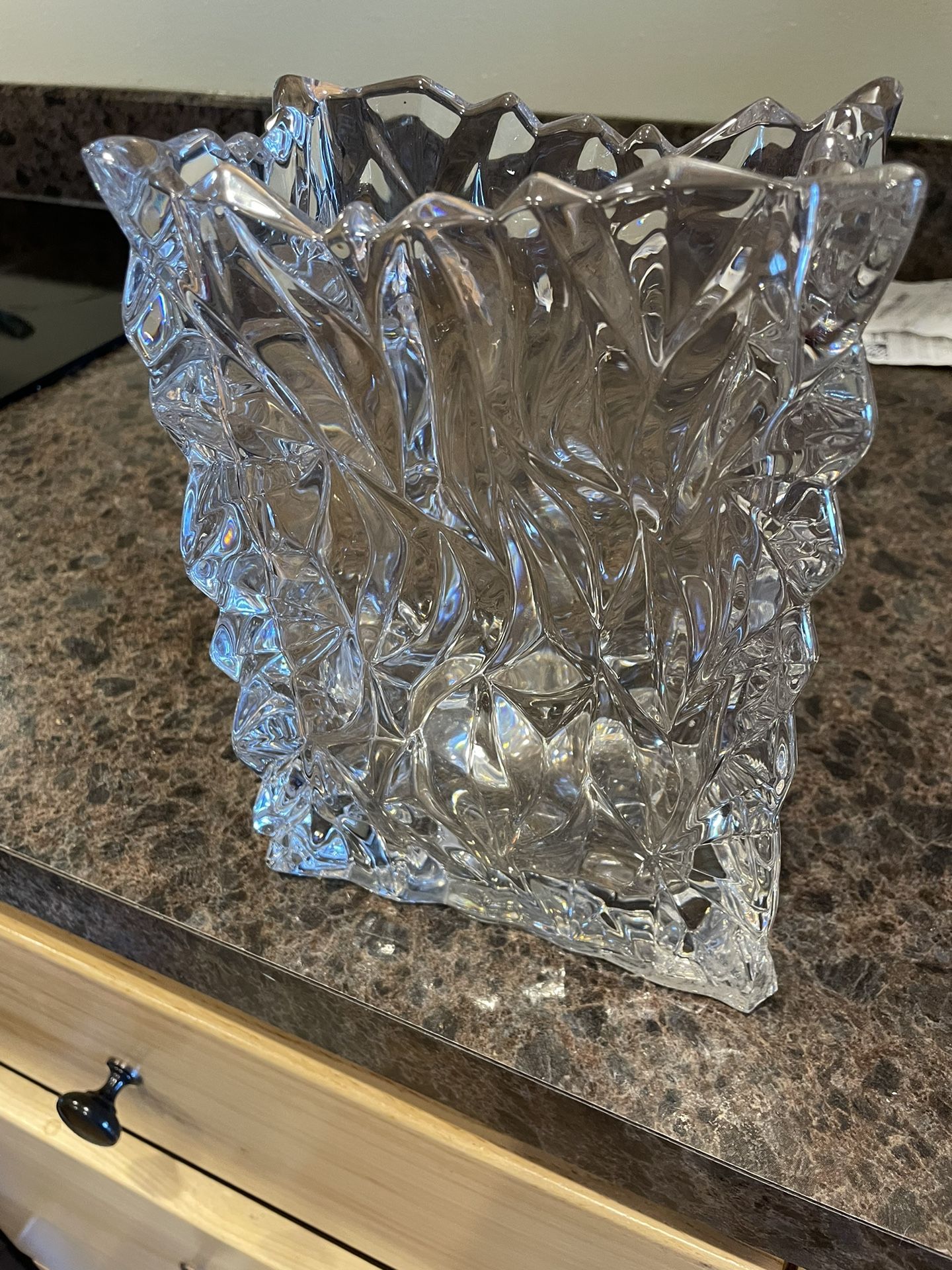 Rosen thank crystal vase( small chip on corner ( see picture)