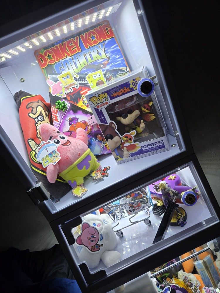 This is a Mini Claw Custom that I worked on. The Claw machines' additional features include a customizable image LED monitor (images can be changed with the app), an Extra Large prize locker with mini locker, multi USB back-power strip (with switch) and a Dollar Bill Acceptor Machine will also come with bobba plush