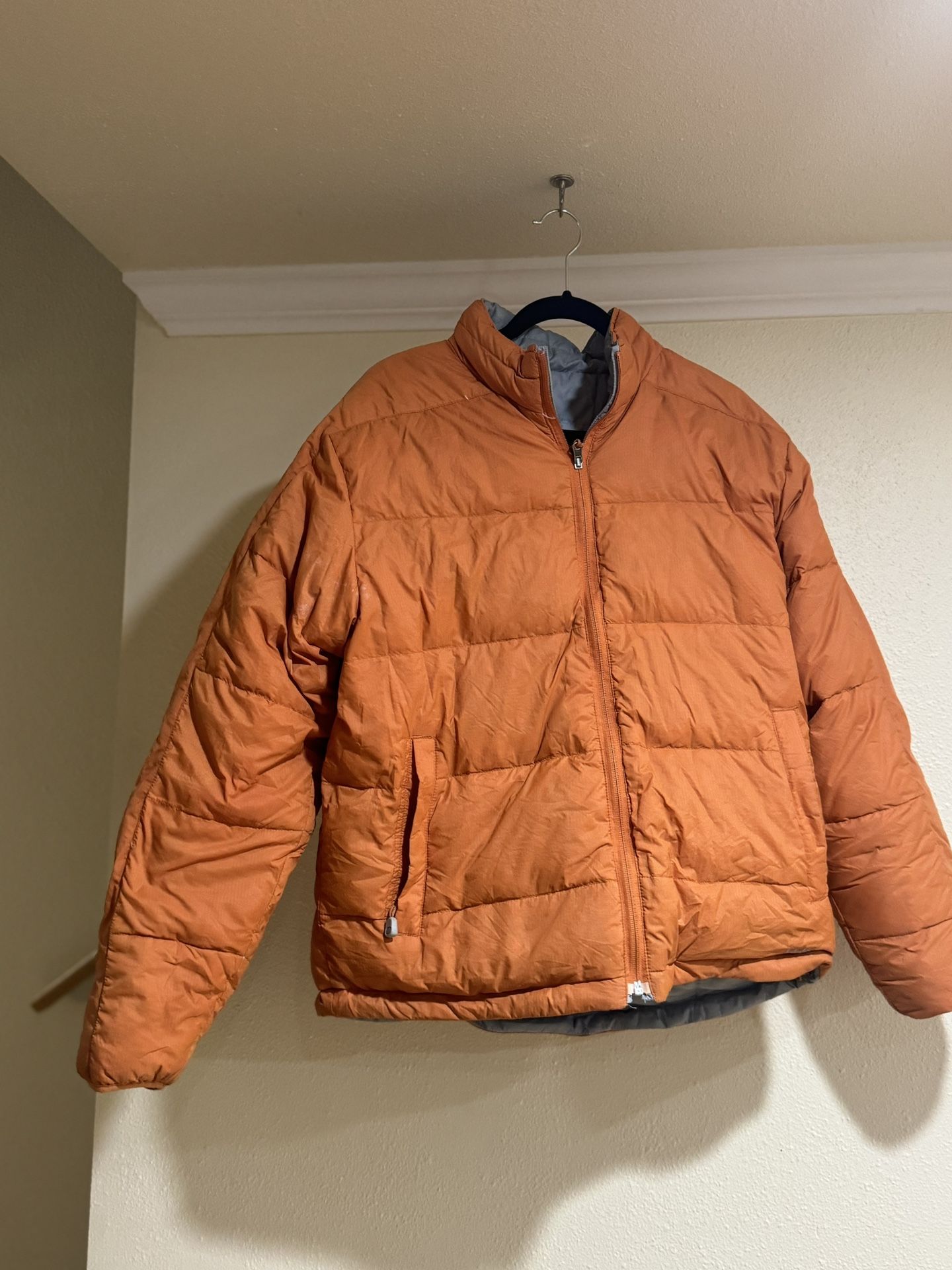 This is a very thick puffy and reversible orange/silver. Used a bit has been up on Mt rainier summit, Helens, etc with me and kept me super warm. Wife gifted me a new parka recently so selling this to someone who can put it to good use. Keeps you super warm on cold days, outdoor activities, camps and hikes. Yours for $30