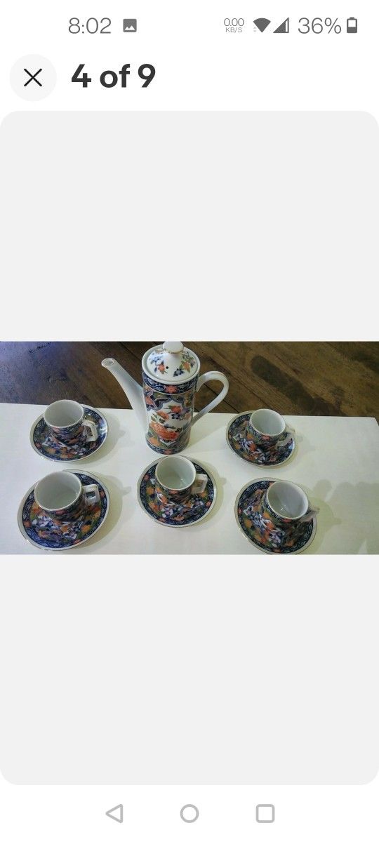 IF YOU ARE SEEING THIS AD IS BECAUSE IT IS AVAILABLE. Vtg. Fukagawa Imari Porcelain Demitasse Coffee Set for 5. Floral Pattern. MINT!! Pick up in Cutler Bay. 20951 Old Cutler Road 33189 (nearby) Feel free to ask me any questions.