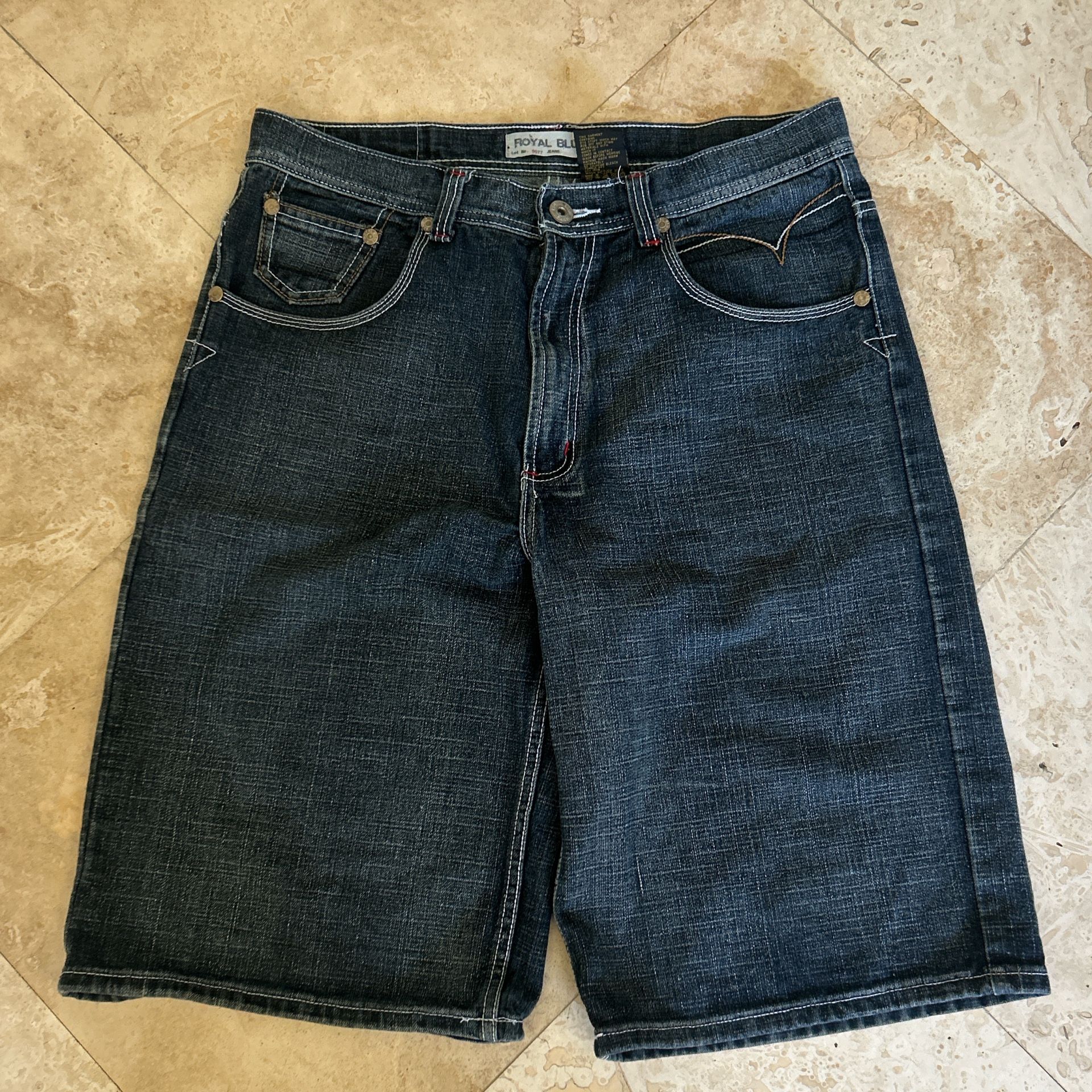Royal Blue baggy jorts with a relaxed fit and a dark wash #jorts #denim #baggy #Y2K #skater Inseam- 13.5” Waist- 34 Leg opening - 13”