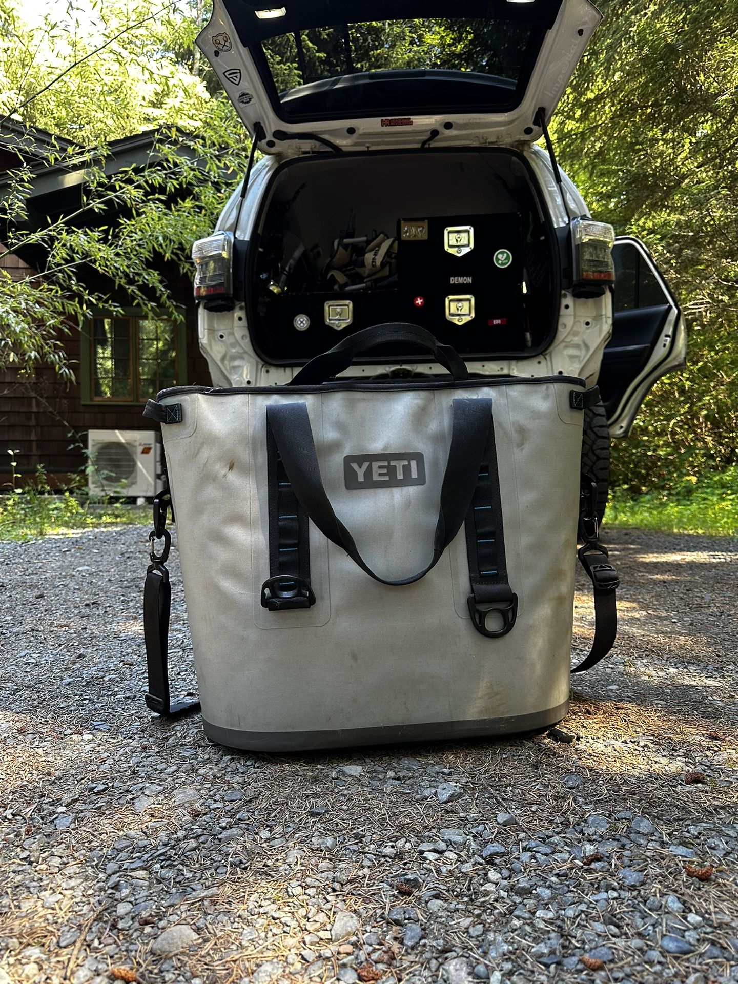Last years model for the yeti hopper M40 totes. $350 new + tax. Selling for $250. Great condition. No tears or damage but a little dirty.