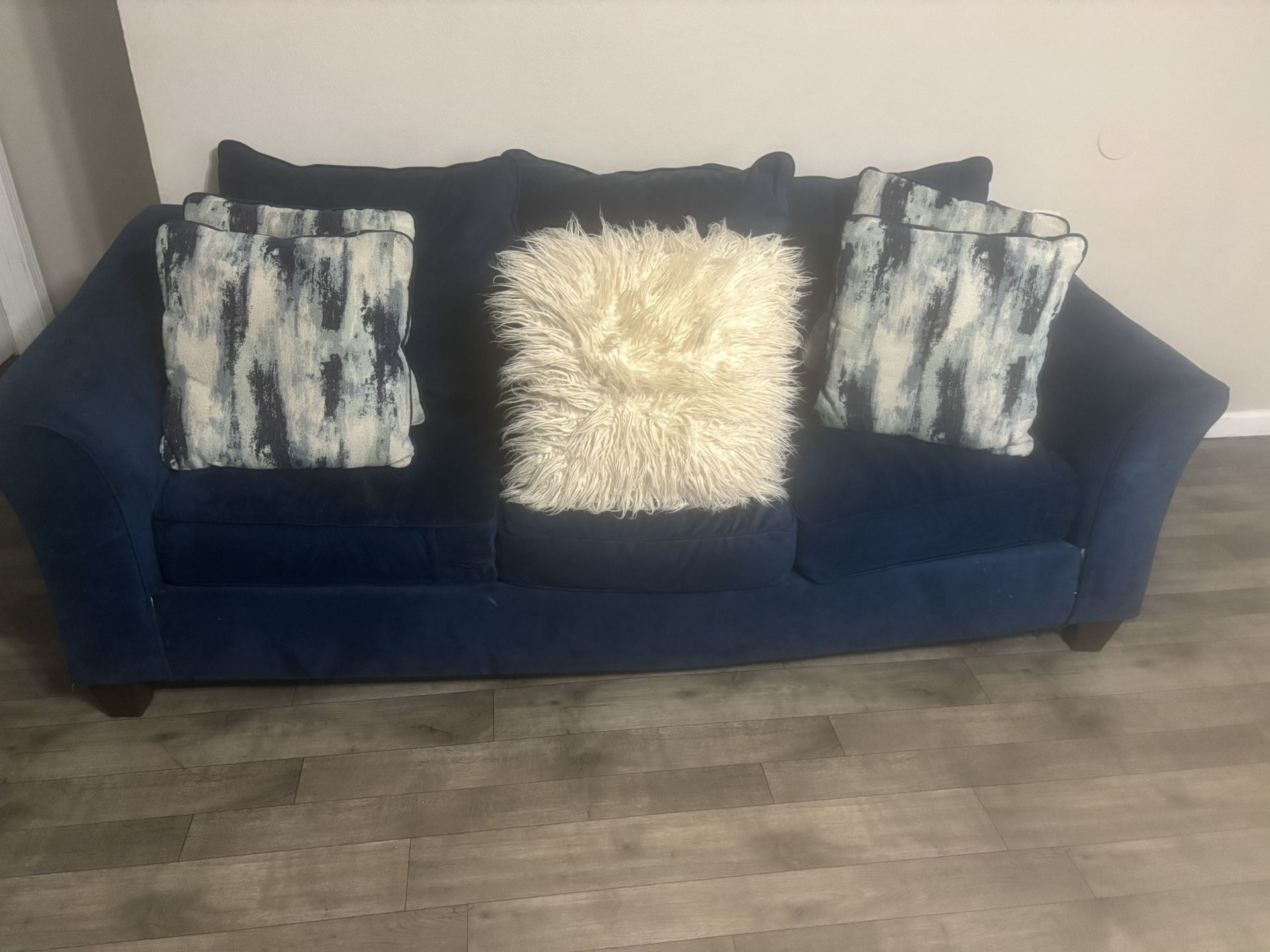 Hello I have a sofa set for sale comes with Pillows and I also have two pictures to match the sofa you will have to clean sofa and pillows other then that nothing is wrong with the sofas I’m only asking for 350 no less then 300 you will have to pick it up your self…