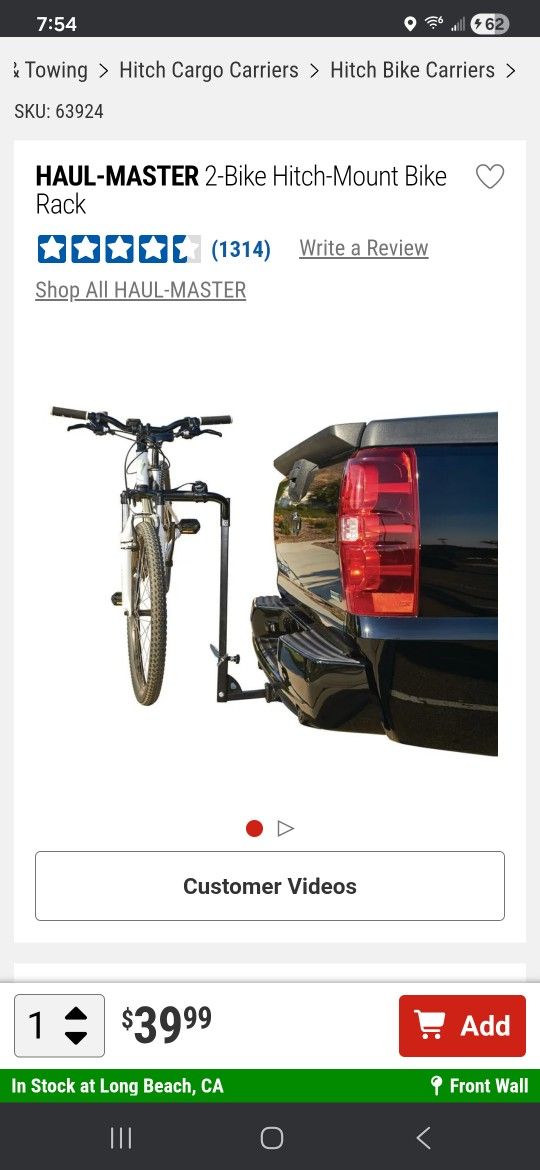 This convenient hitch-mounted bike rack gives you easy access to your trunk or tailgate without dismounting your bikes. The rack securely holds 2 bikes and has thermoplastic fittings to protect the finish. Access your tailgate even with a bike in place Securely holds 2 bikes Use on Class I, II, III, and IV hitches Pinch hitch pin to ensure stable connection to receiver Reflective end caps for improved visibility Nonmarring thermoplastic bike holders with 4 hook-and-loop straps for added security