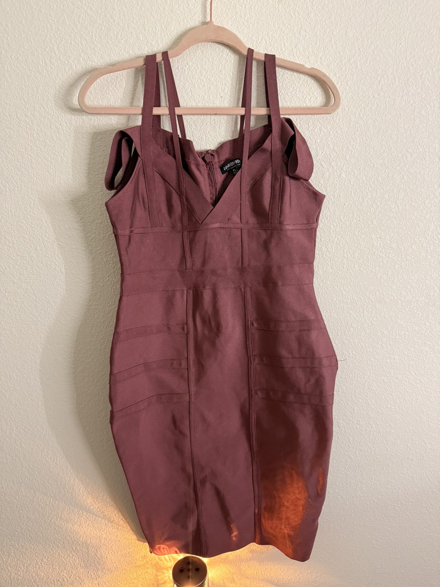 Purplish/Pink bandage dress with strappy details and stretchy shoulder straps