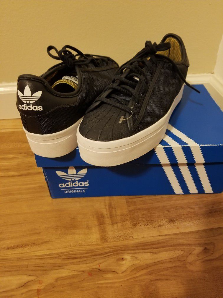 Brand new Womens Adidas in navy blue color with gold trim size 8 but they run a little big more like a 8 1/2 or even 9, never worn! Check out my other items!!