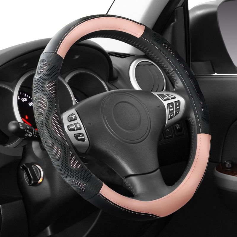 GSPSCN Steering Wheel Cover with 3D Honeycomb Hole Anti-Slip Sporty Breathable Grip, Microfiber Leather Auto Steering Wheel Protector, Odorless, Heat Resistant for Women Man Universal 15 inch (Pink) Standard size[14 1/2''-15''] Pink