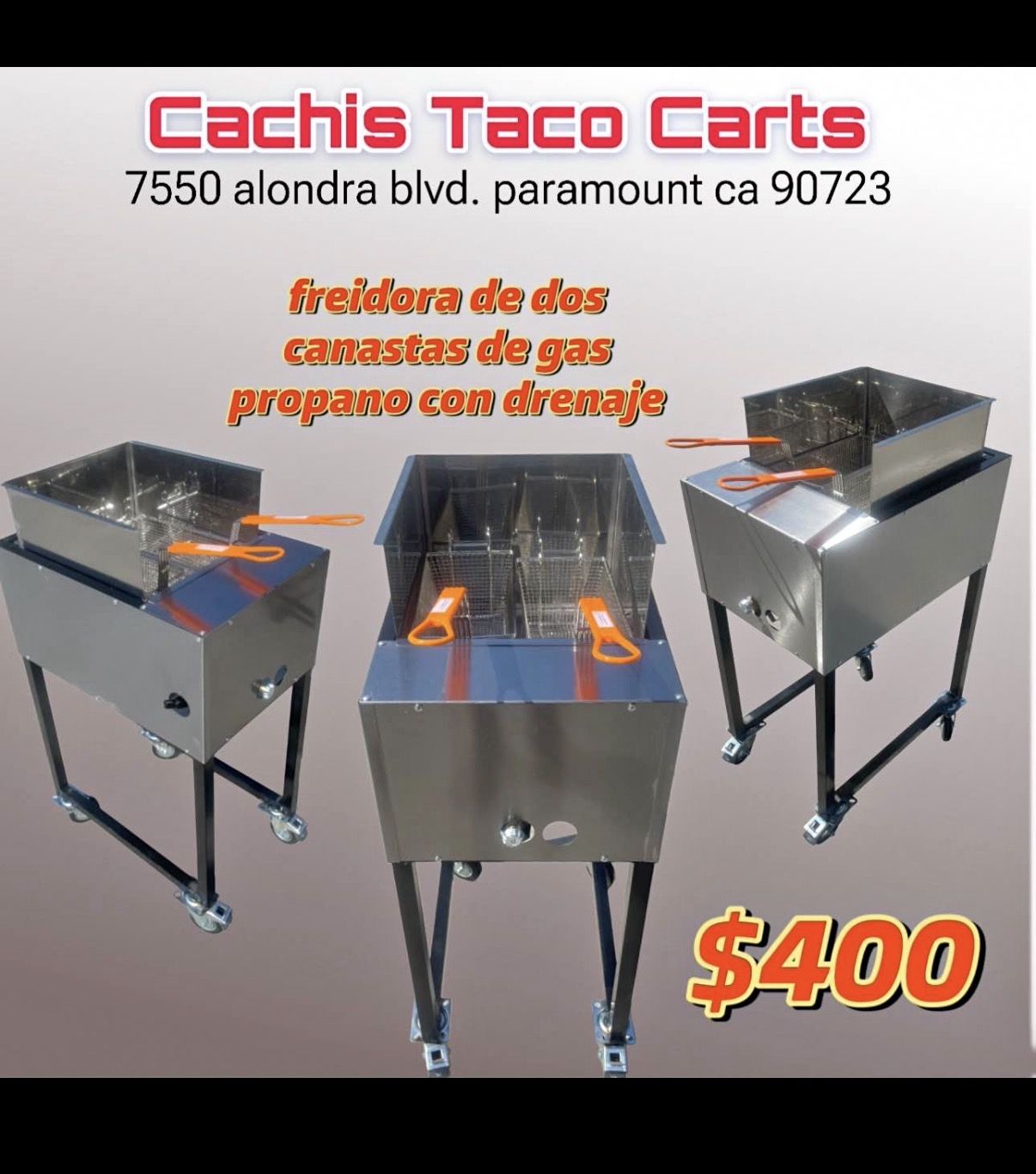 freidora de dos canastas de gas propano incluye manguera con regulador
