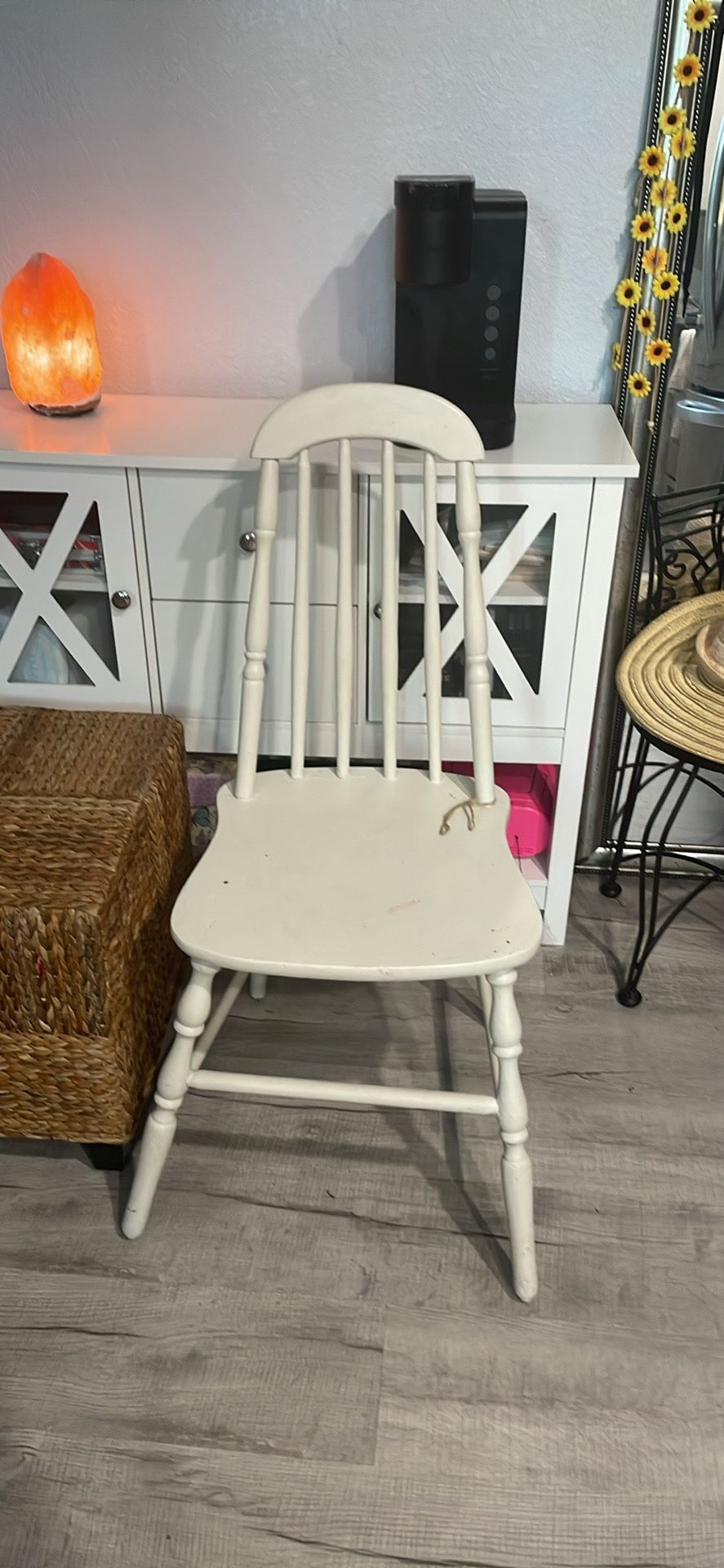 Distressed, off white, sturdy wooden chair. Smoke and pet free home. Pickup Dunnellon