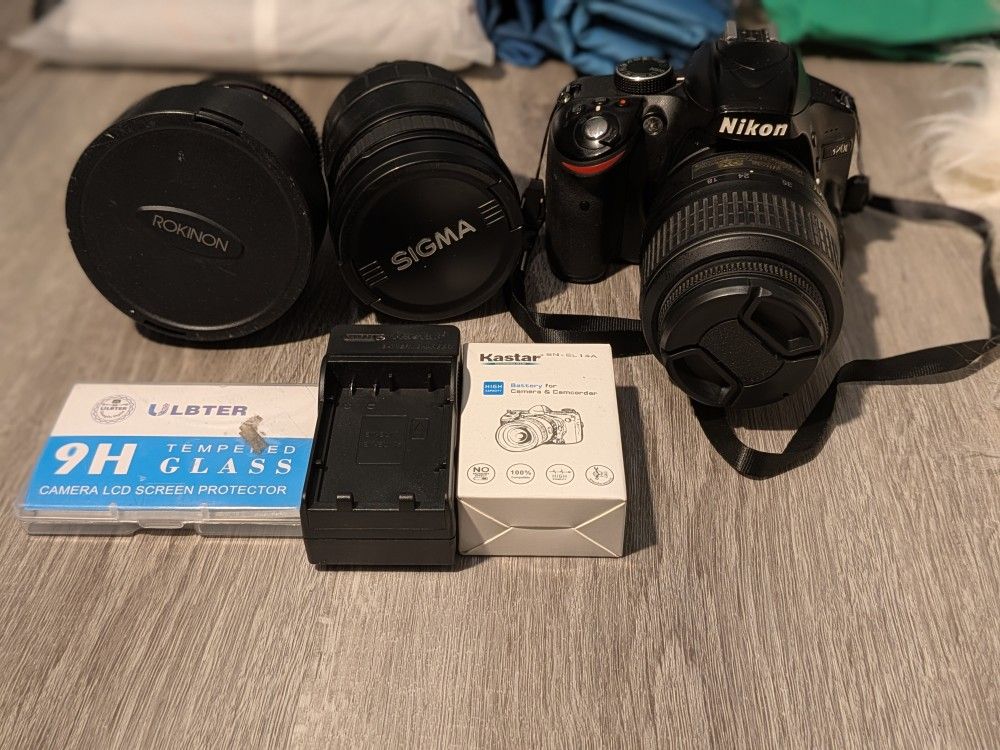 Nikon D3200 2 new batteries With charger Camera tripod stand Lights: 2 studio lights Neewer S400n Carrying bag Backdrops: Around 10 backdrops from baby shark, Valentine's Day, baby shower, 8x10ft Old Master Fabric Blue White It's a royal baby shower 5"7, and other bigger ones that I haven't used. Backdrop stand New born pillow setup 64gb sd card Reflectors: 43" 110cm 5 in 1 Photography Studio Multi Photo Disc Collapsible Light Reflector Lens: 3 lenses ROKINON 14mm F/3.1 Cine DS Sigma 28-105mm f/2.8-4 D Lens Nikon 18-55mm