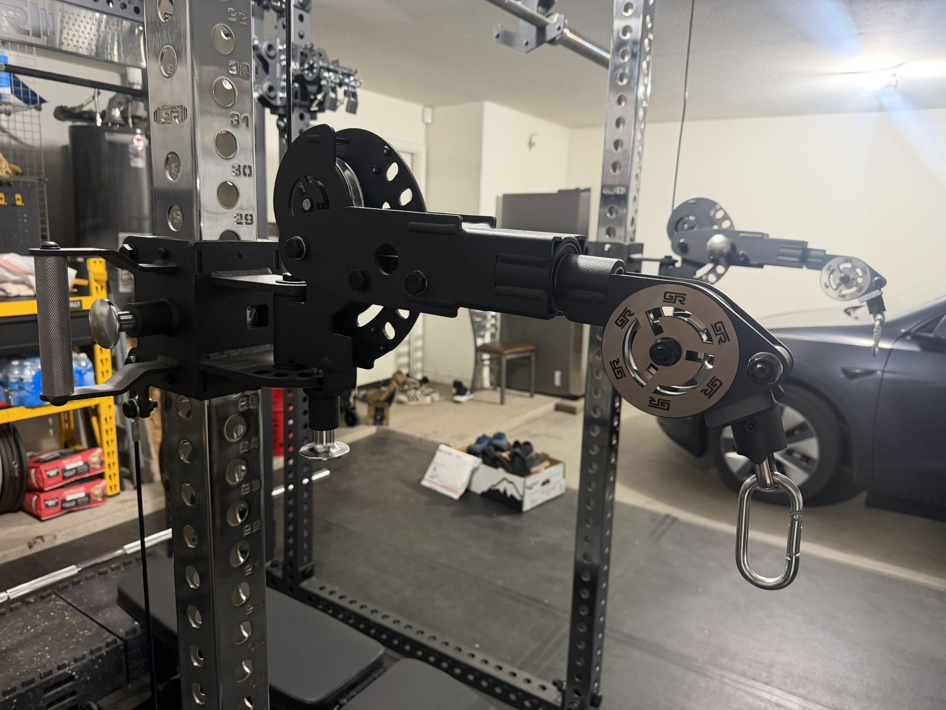 Turns your typical cable integrated rack into a free motion cable machine! Features 180 degree adjustability horizontally, 90 degree adjustability vertically through 7x7 angle positions for a total of 49 different positions, and a 360 degree swivel for the cable outlet. *Rollers and grooved front rollers included (2.0 retrofit upgrades — last pic) *cables are not included