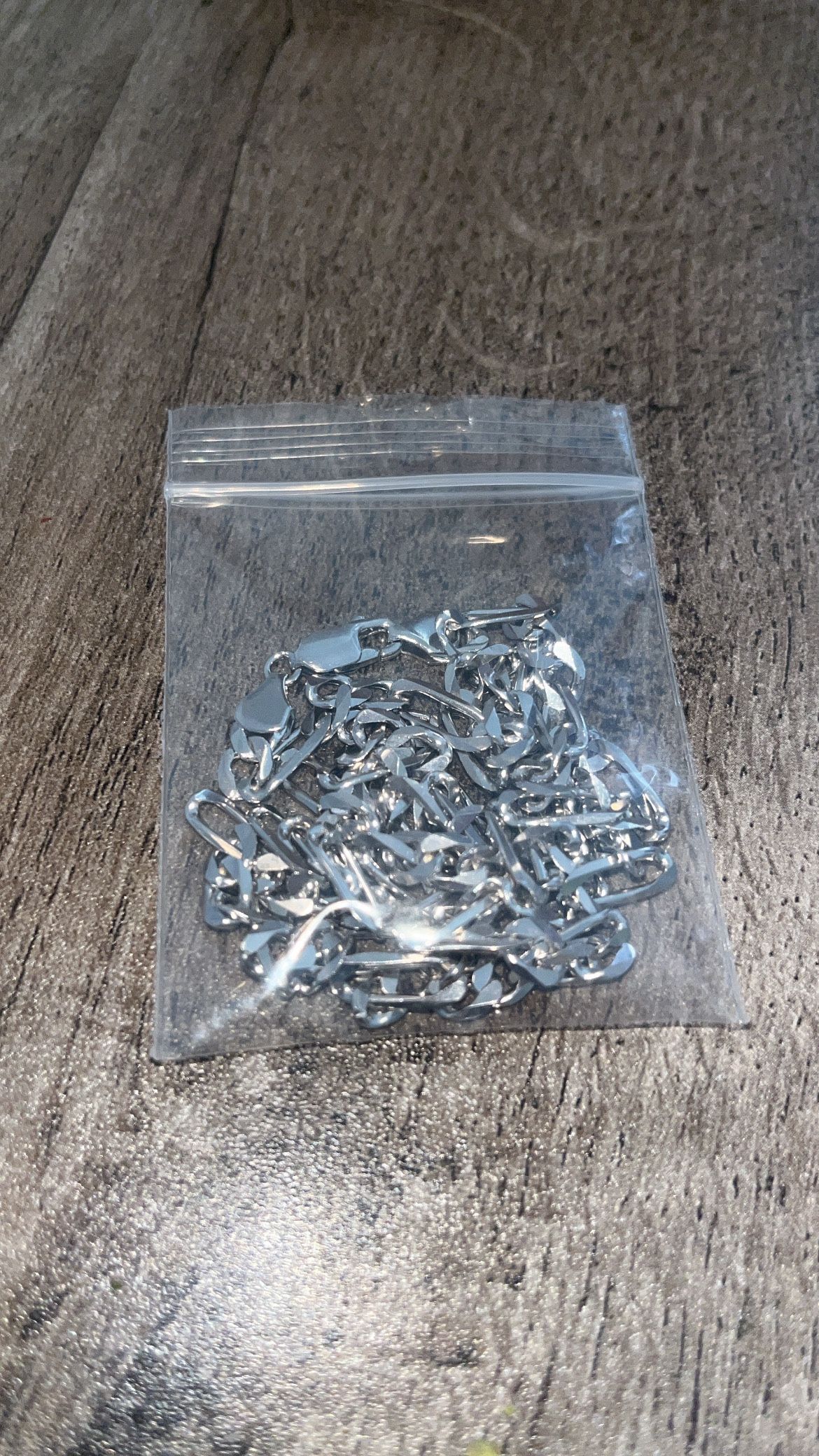 Indulge in Opulence: Exquisite Sterling Silver Figaro Chain Experience the epitome of luxury with this extraordinary 6.5mm Sterling Silver Figaro Chain. Meticulously crafted from premium sterling silver, this chain is a testament to infinite elegance and unparalleled craftsmanship. Its substantial weight and intricate Figaro design exude a sense of opulence and sophistication. Key Features: * Premium Sterling Silver: Ensures durability and a lustrous finish. * Bold 6.5mm Width: A commanding presence that demands attention. * Substantial Weight: 17g of pure luxury. * Intricate Figaro Design: A classic style, reimagined. Indulge yourself or gift this masterpiece to someone special. This is more than just a chain; it's a symbol of refined taste and discerning style.
