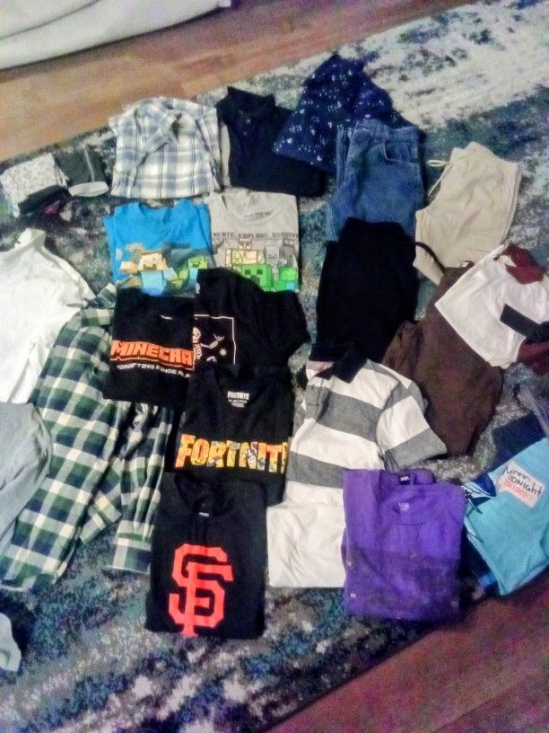 Mostly new! 30 items total 1 ,3/4 sleeve top, 2 long sleeves, 2 button up long sleeve, 2 short sleeve button ups, 3 collar button tops, 8 tshirts ( some are 14/16 & some are 18) 3 pants ( all are new), 1 short, &2 pj shorts with 1 pj tank top, 5 brand new 14 , 14/16 boxer briefs