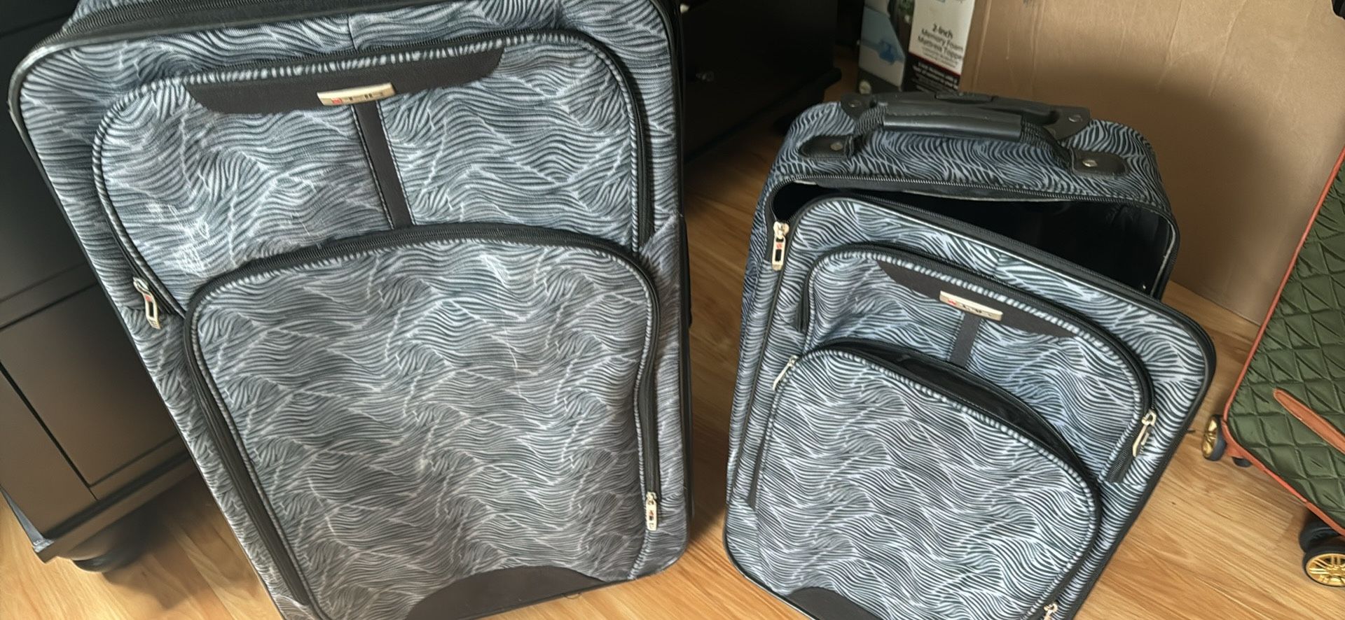 Both suitcases work perfectly well. One is about the size of a bag that would be checked in and the other is the perfect size carry on. $30 for both obo