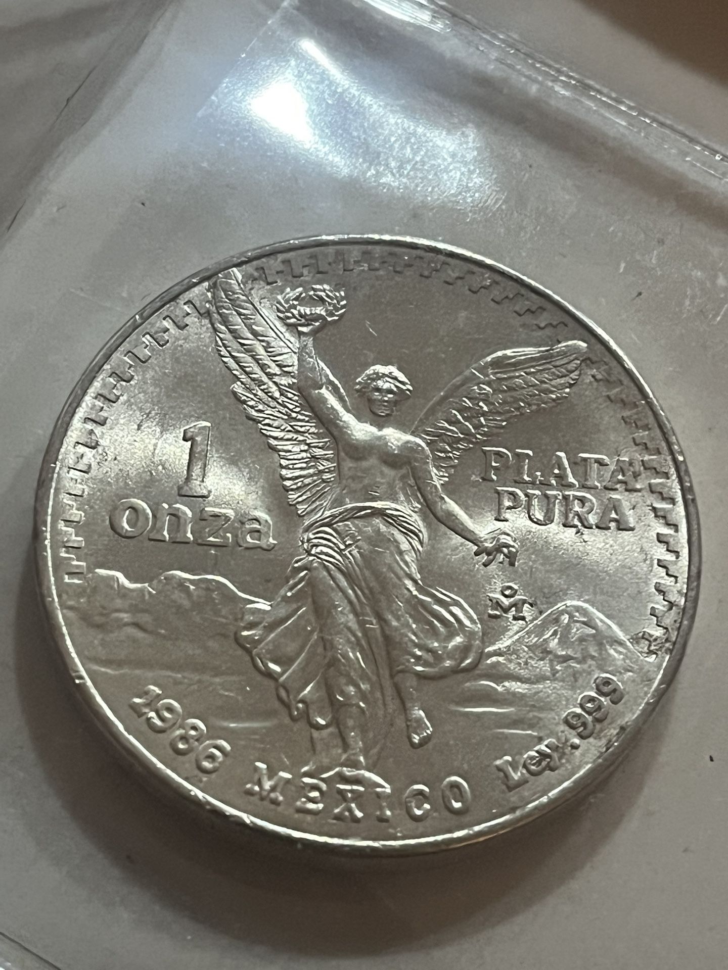 1986 Mexican Libertad 1 Ounce Of Pure .999 Fine Silver Coin Banco De Mexico
