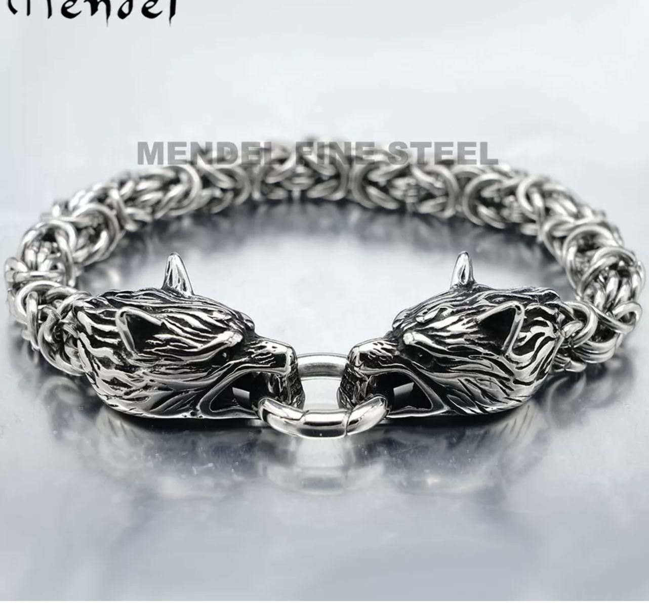 Boys small 6 inch Norse Viking Fenrir Wolf Head Stainless Steel Bracelet Mens