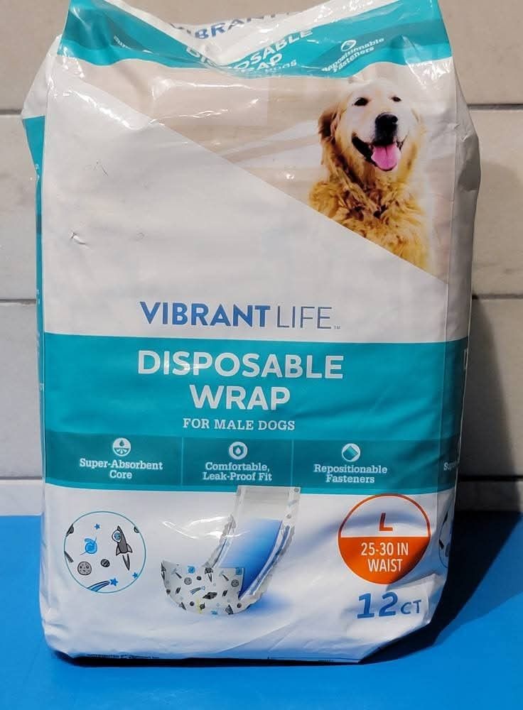 Vibrant Life Disposable Wraps for Male Dogs $6 each (Two Available in size Large) Items are cross posted Pick up is in Burbank 60459 near 79th street and narragansett (approximation)