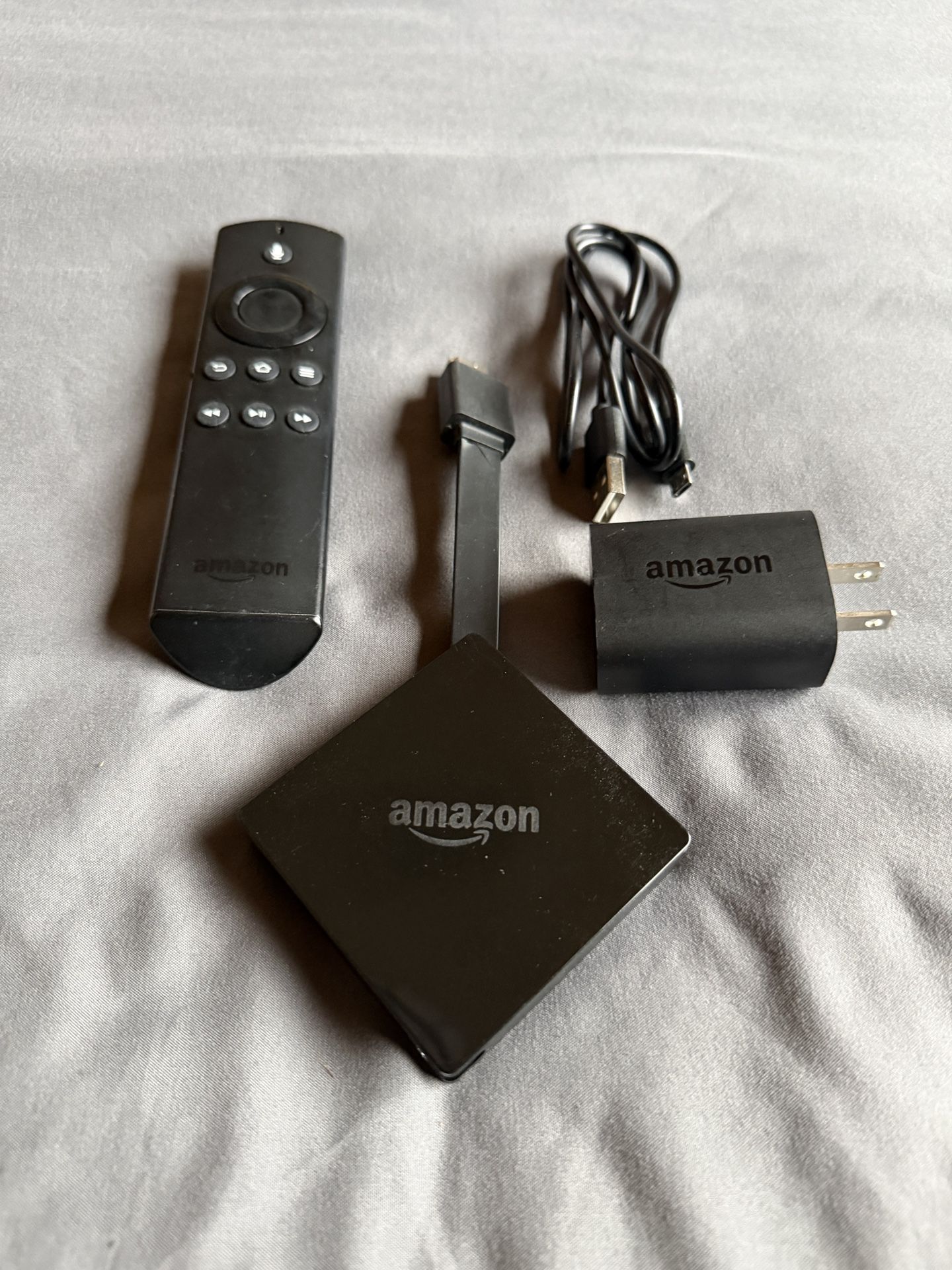 Amazon Fire TV HDMI pendant with Alexa remote, power cable and plug. Model No. LDC9WZ. Used, but in very good condition. Sold as is. Batterie for remote not included. See photos for detail.