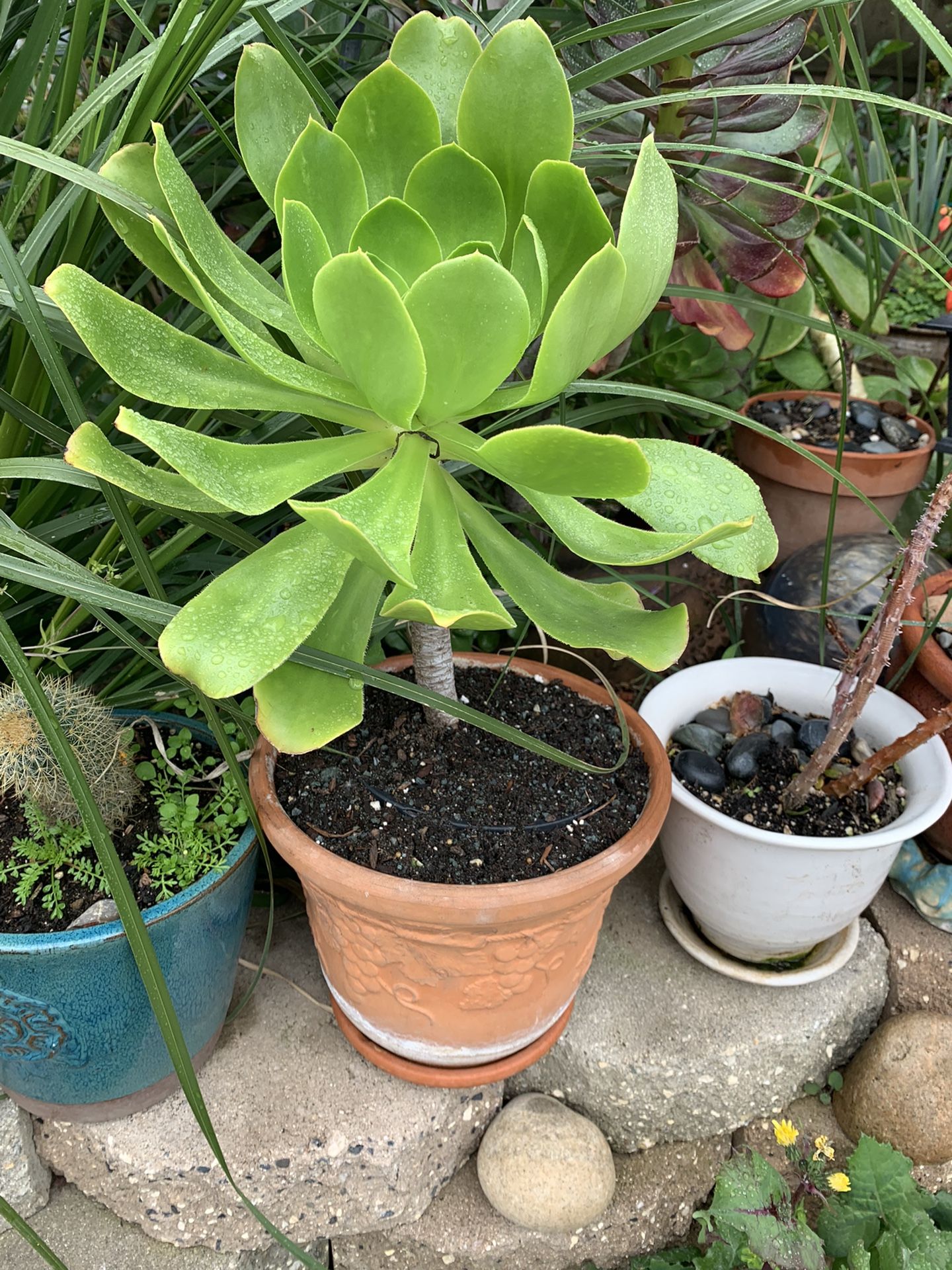 Succulent In Decorative Medium Clay Pot.