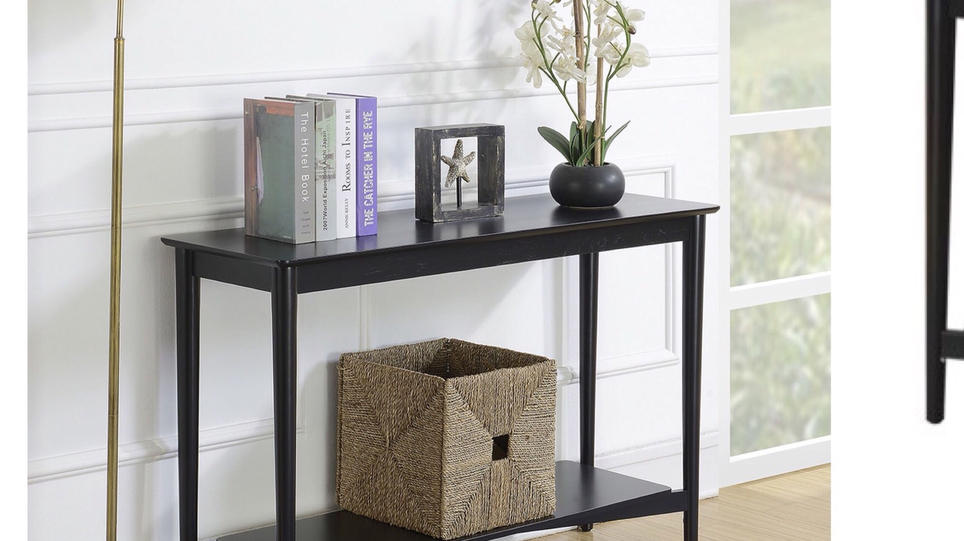 Brand New in Box. Retail for $199+taxes. Rich Black Finish. Crafted of engineered wood, solid wood, and wood veneer.Also have 1 matching End Table, Please ask for picture and price if you are interested in. Dimensions: 47.75W x 15.25D x 30.25H in.